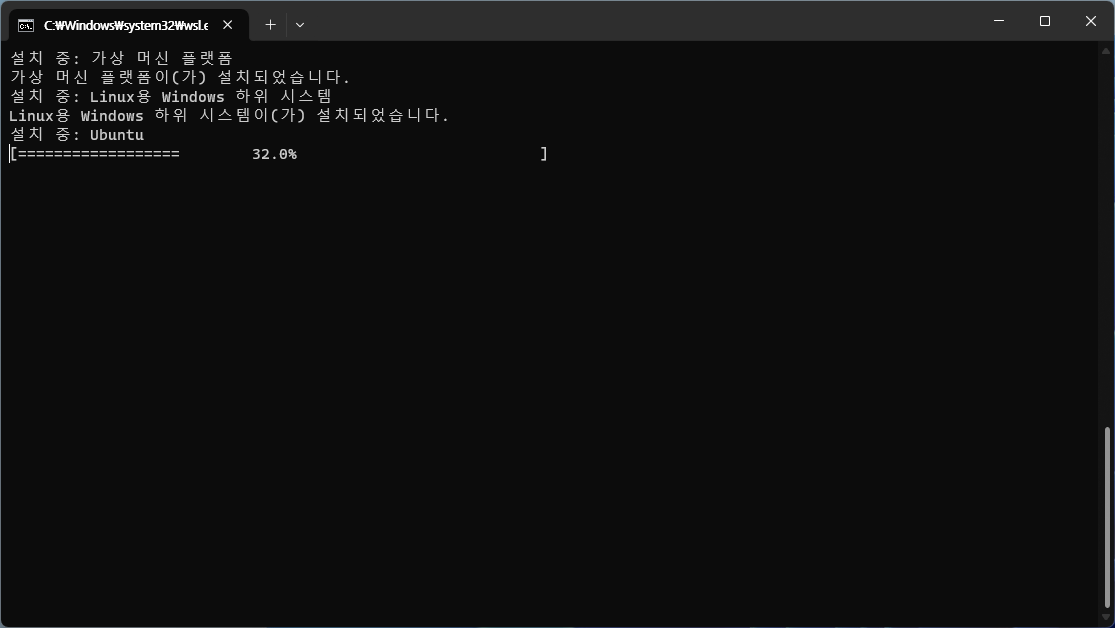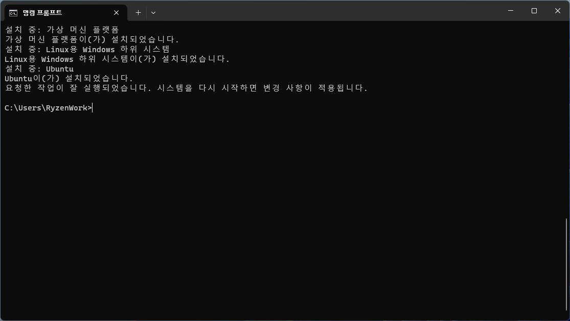 명령 프롬프트나 윈도우 파워쉘에서 명령하나로 우분투가 설치가 됩니다.