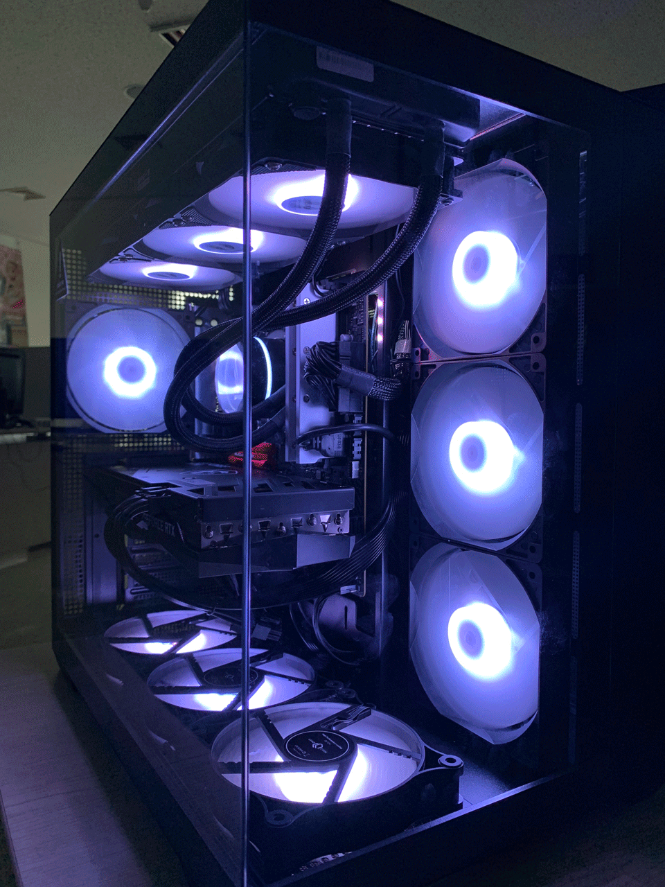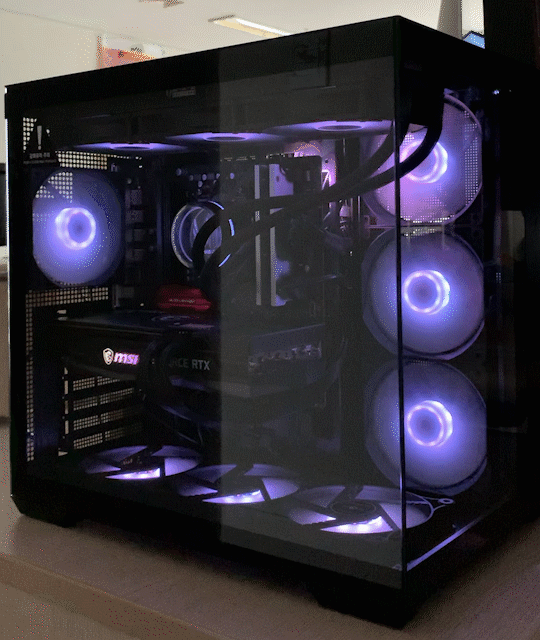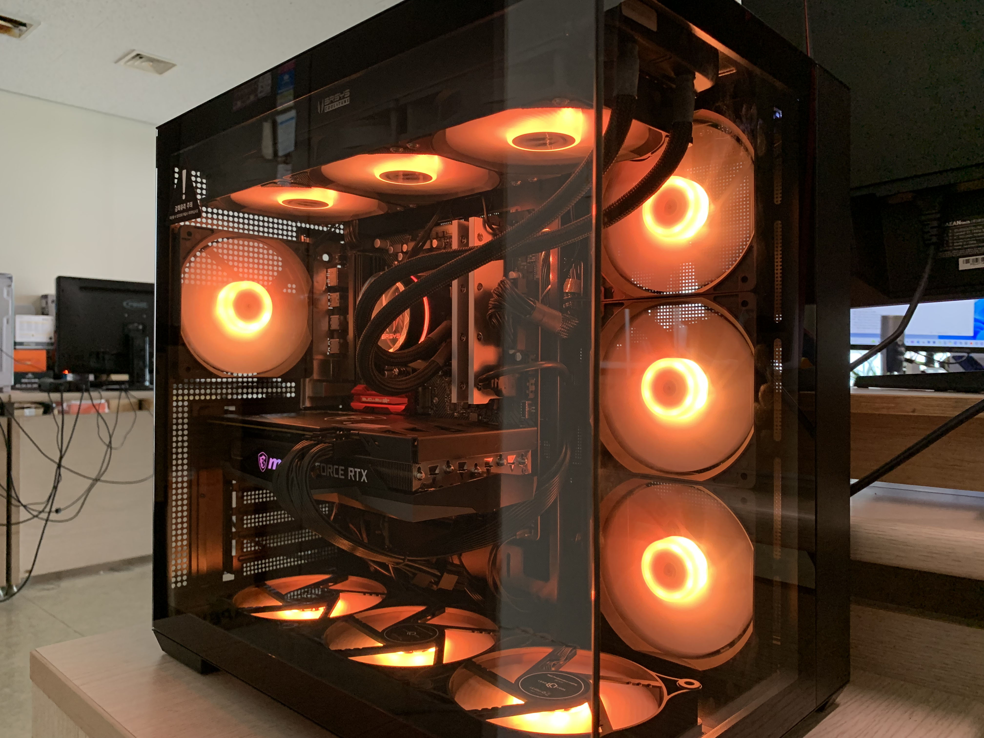 측면 ARGB 팬 120mm 3개(리버스 흡기 방식)와 후면 ARGB 팬 120mm 1개가 기본 제공됩니다.