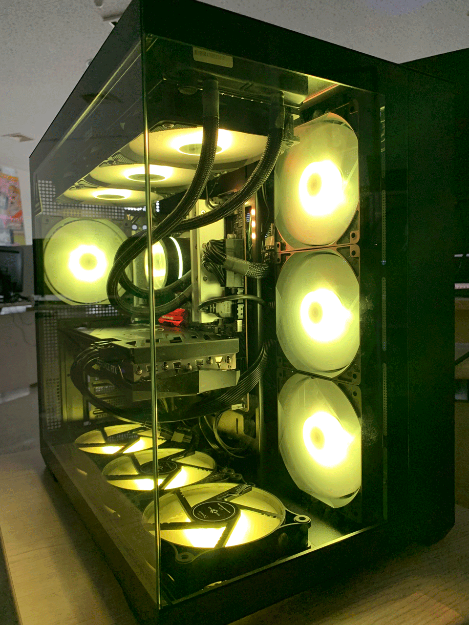 - 기본 4개 제공하는 쿨링팬은 ARGB를 지원하는 팬으로, 메인보드에서 지원하는 소프트웨어를 통해 사용자의 취향에 맞게 색상을 튜닝할 수 있습니다. 상단과 하단에 팬 6개를 추가로 설치가능하며, 최대 쿨링팬 장착 갯수 10개까지 지원하여 멋진 시스템으로 꾸미는것은 물론 시원한 쿨링을 가능하게 해줍니다.