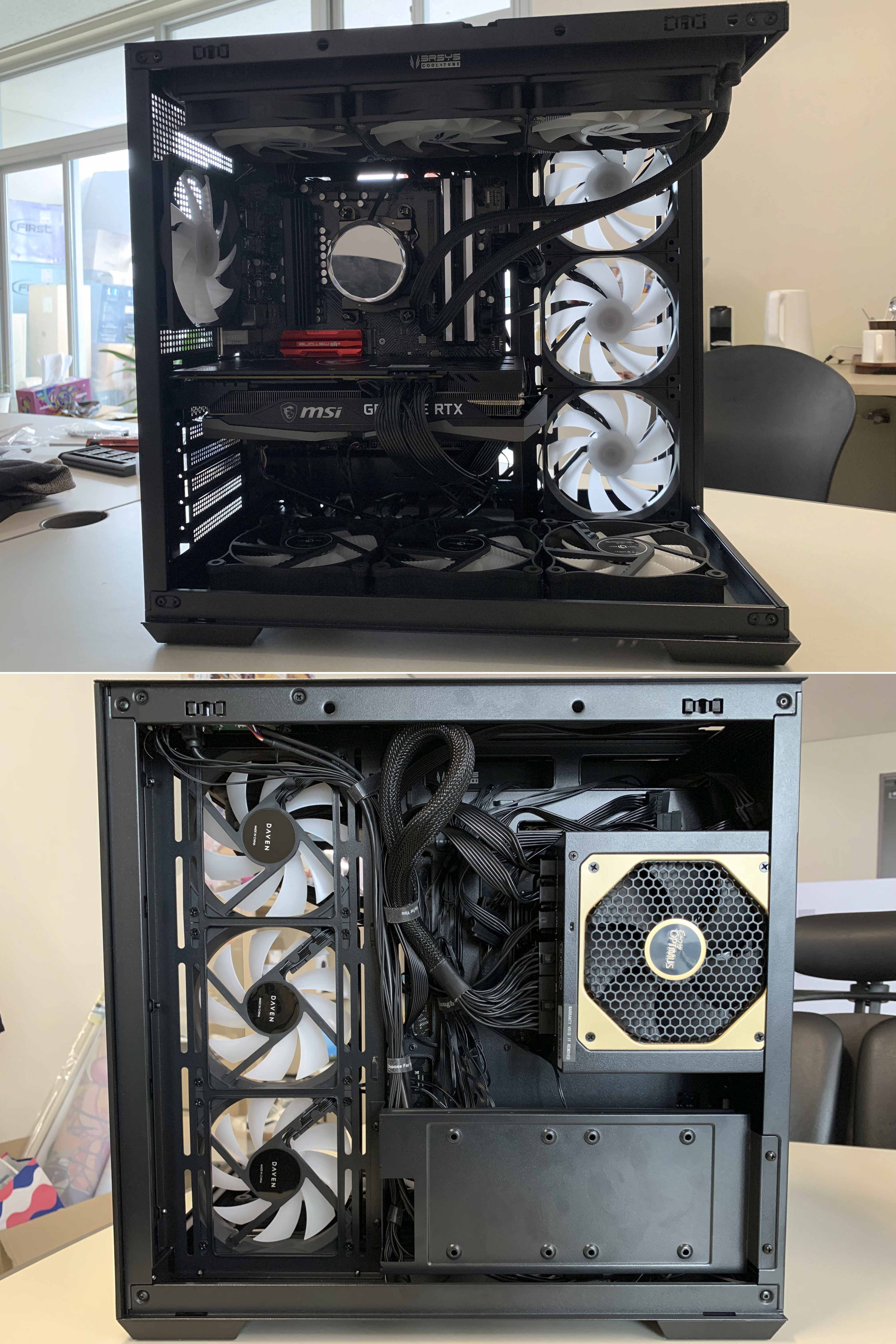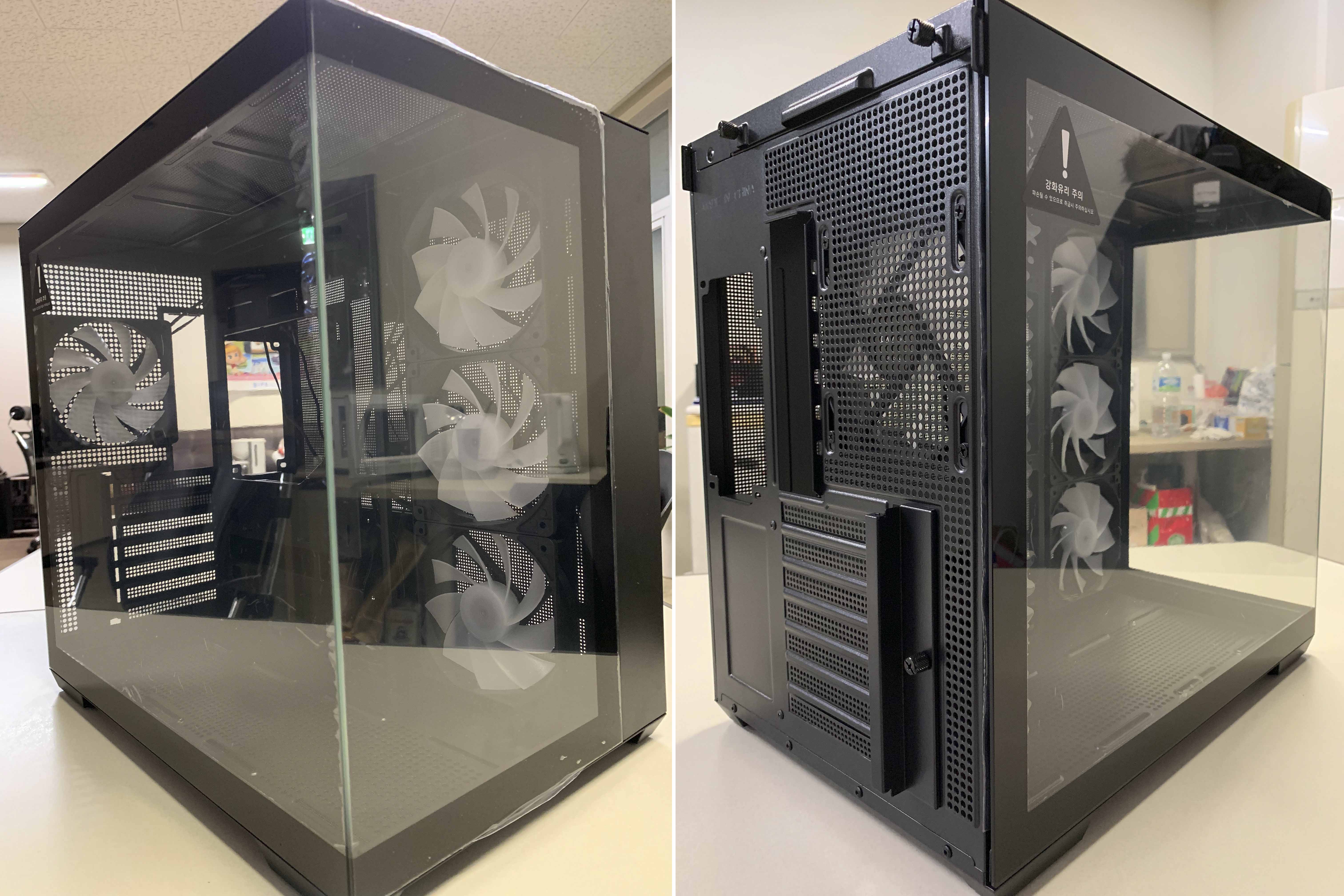 듀얼챔버 케이스라 파워가 하단이 아닌 뒤에 있어서 케이스의 폭이 넓고, 대신 높이는 낮습니다.