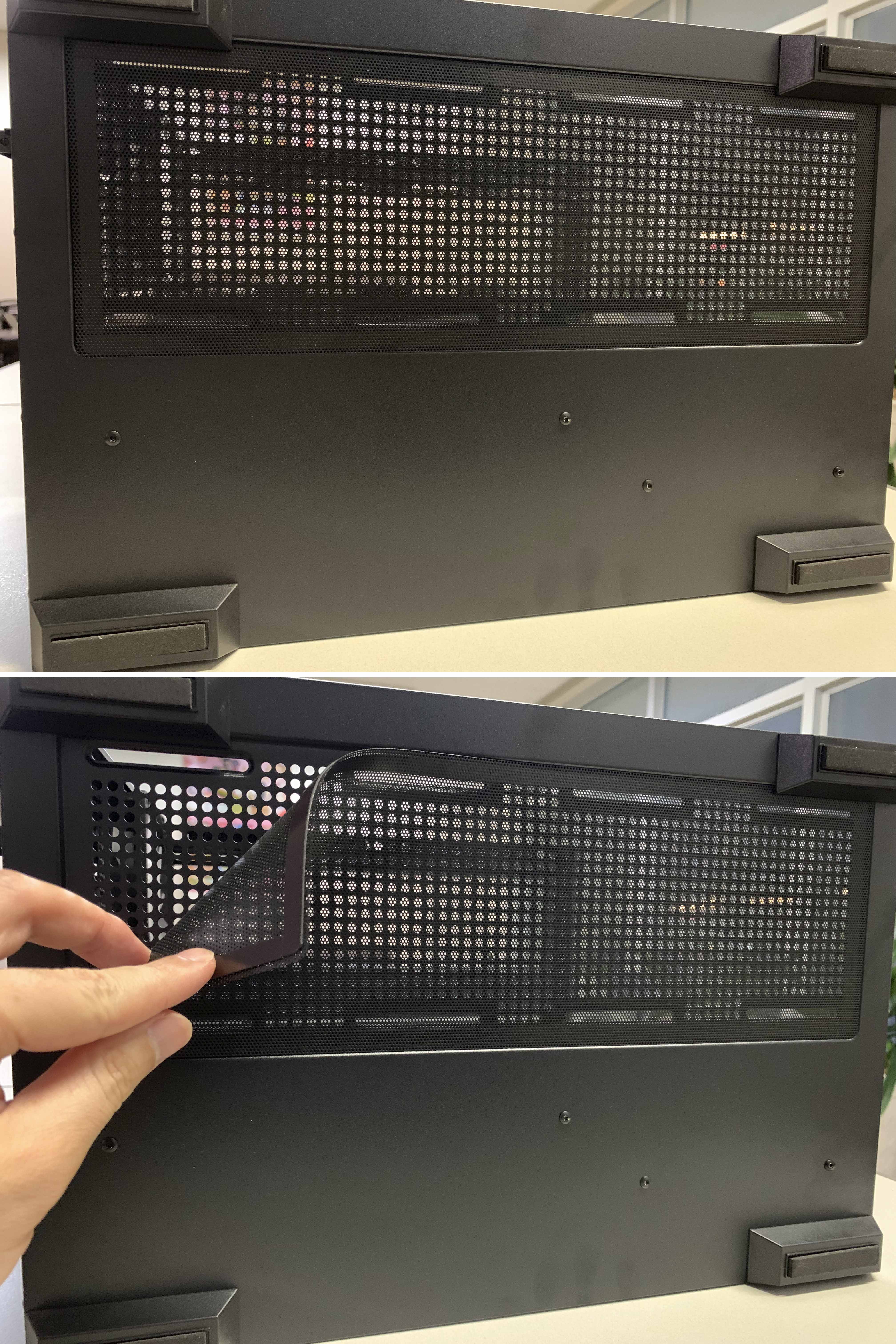 하단에는 미끄럼 방지와 자석 부착식 먼지필터로 세척이 용이하도록 설계되어 있으며 먼지 유입을 막고 시스템을 보호하도록 설계되어 있습니다.