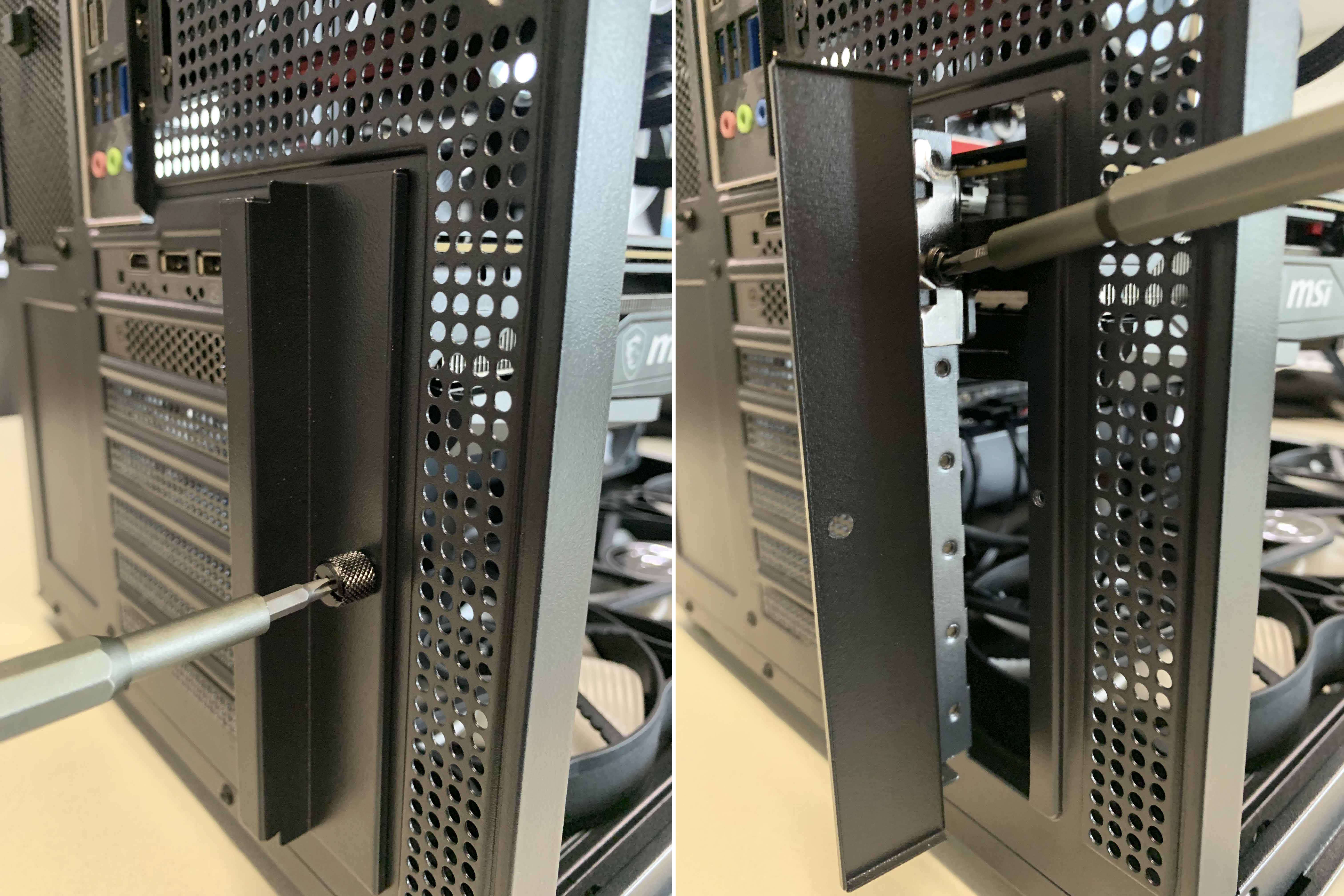 외장 그래픽카드가 장착될 슬롯을 손으로 밀어서 분리합니다.