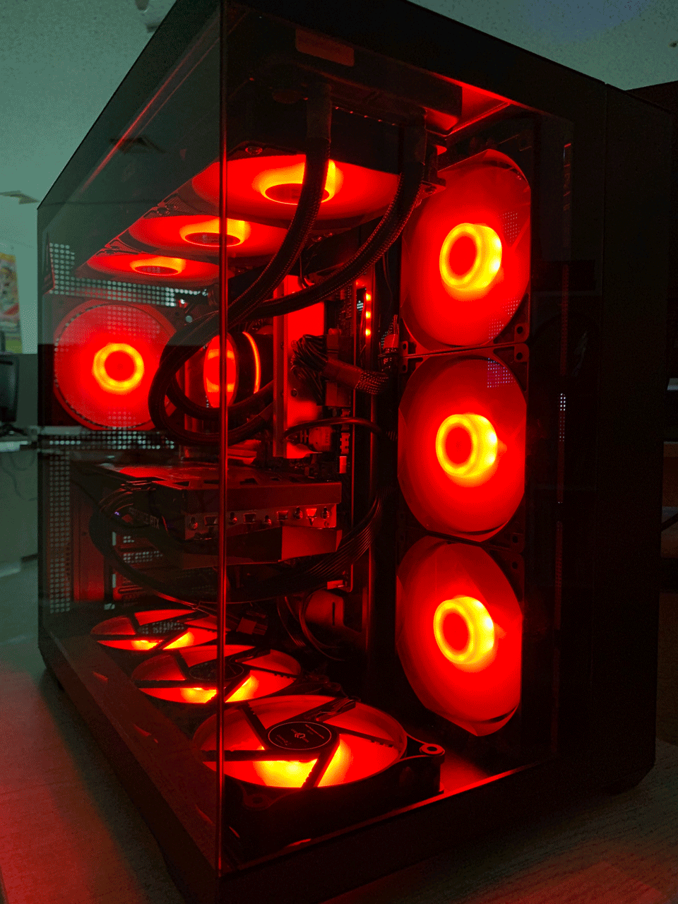 쿨링 팬은 상단 3개, 하단 3개를 추가해 최대 쿨링팬 장착 갯수 10개까지 지원하여 쾌적한 쿨링이 기대됩니다.