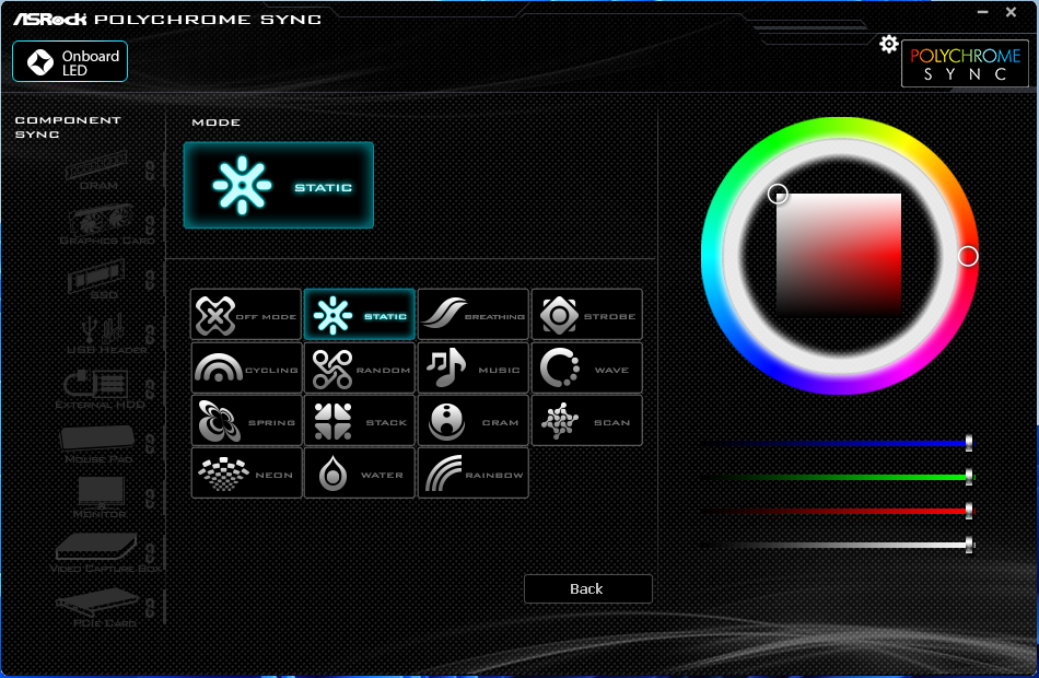 메인보드에서 제공하는 소프트웨어를 통해, MODE, LED색상 변경해보았습니다.