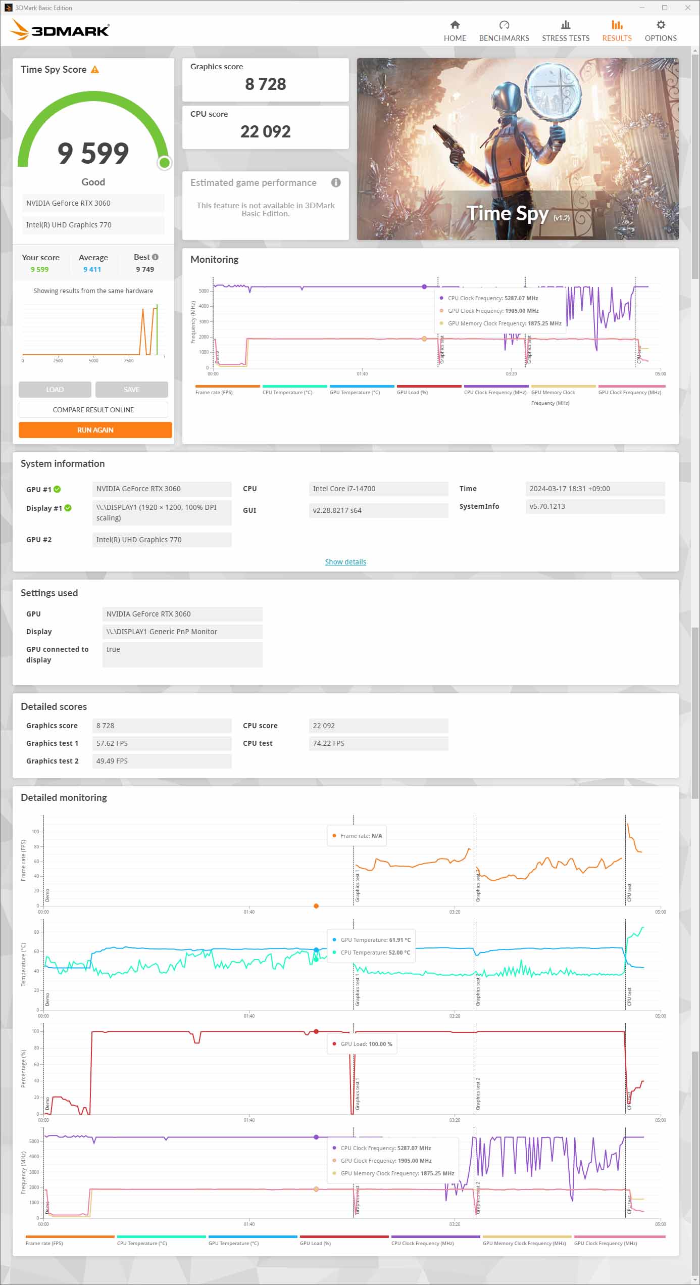 3DMARK 파이어 스트라이크와 타임 스파이 실행결과입니다.