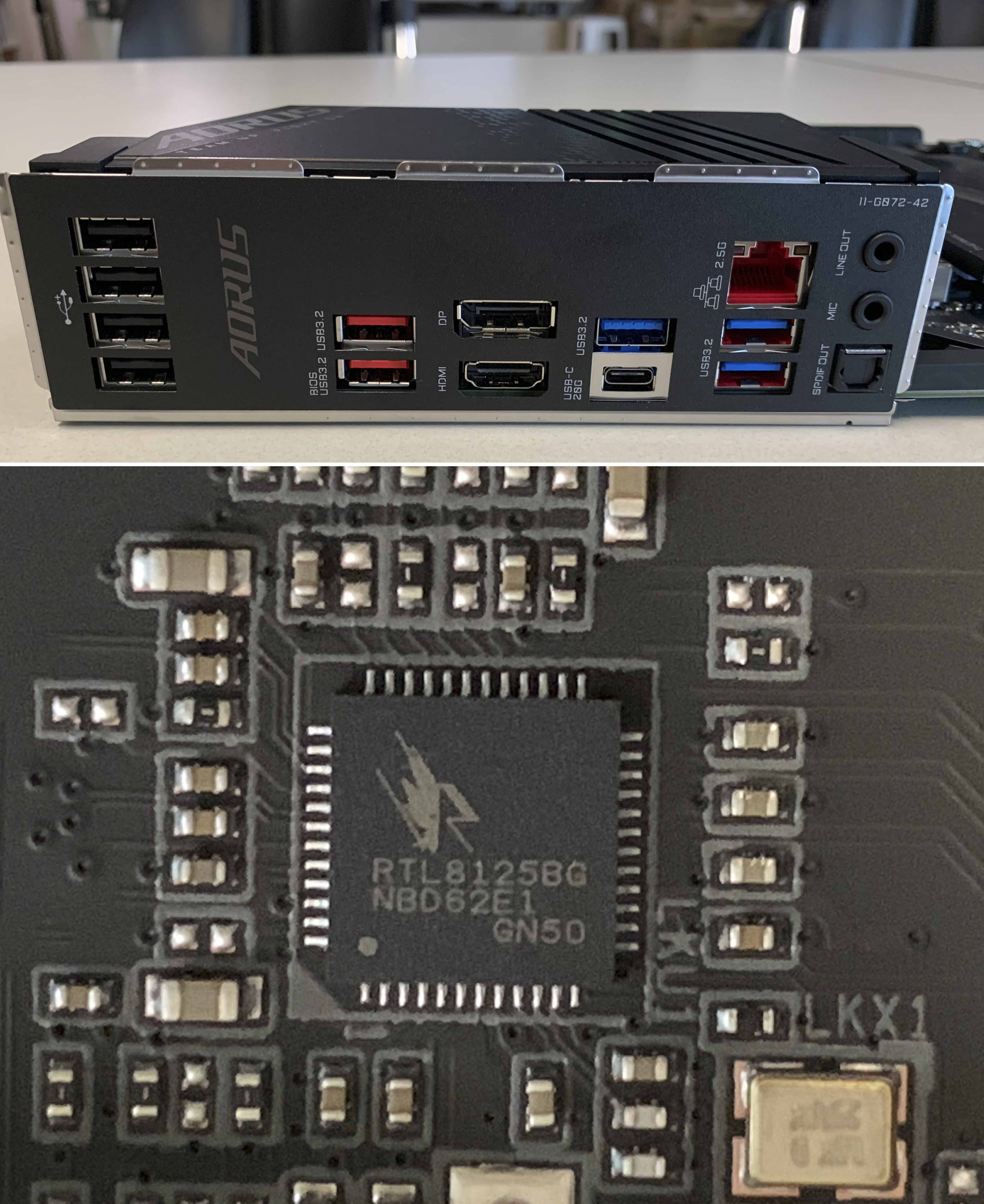 USB2.0 4개, 최대 10Gbps속도의 USB3.2 Gen2 2개(빨간색), HDMI 2.0, Display Port 1.2, USB3.2 Gen2x2 Type-C, USB3.2 Gen1 3개(파란색), PS/2, Realtek RTL8125B 일반 1Gbe 네트워크 대비 2배 빠른 전송 속도의 2.5Gbe Lan, S/PDF 출력 커넥터, 마이크, 오디오 포트 등이 있습니다.