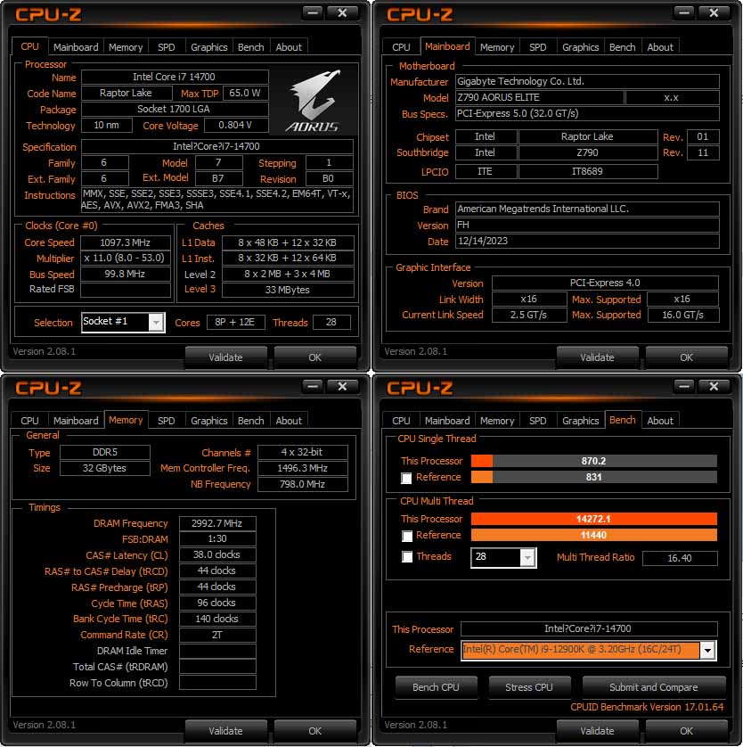 - 인텔 14/13/12세대 프로세서를 모두 지원하는 GIGABYTE Z790 AORUS ELITE 메인보드는 고성능 CPU i7-14700는 무난하게 소화하여, 최고의 PC시스템을 셋팅하는데 정말 선택지입니다.