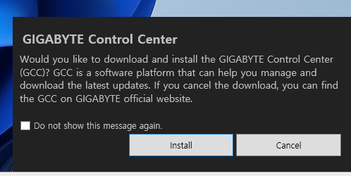 메인보드 교체를 하거나 윈도우를 새로 설치할 경우, 드라이버를 직접 다운로드 받고 설치하는게 여간 번거로운 일이 아닌데, GIGABYTE Control Center로 간편하게 필요한 설치를 가능하게 해줍니다. 윈도우를 실행하면, 화면 우하단에 GIGABYTE Control Center 설치 여부를 알려줍니다.