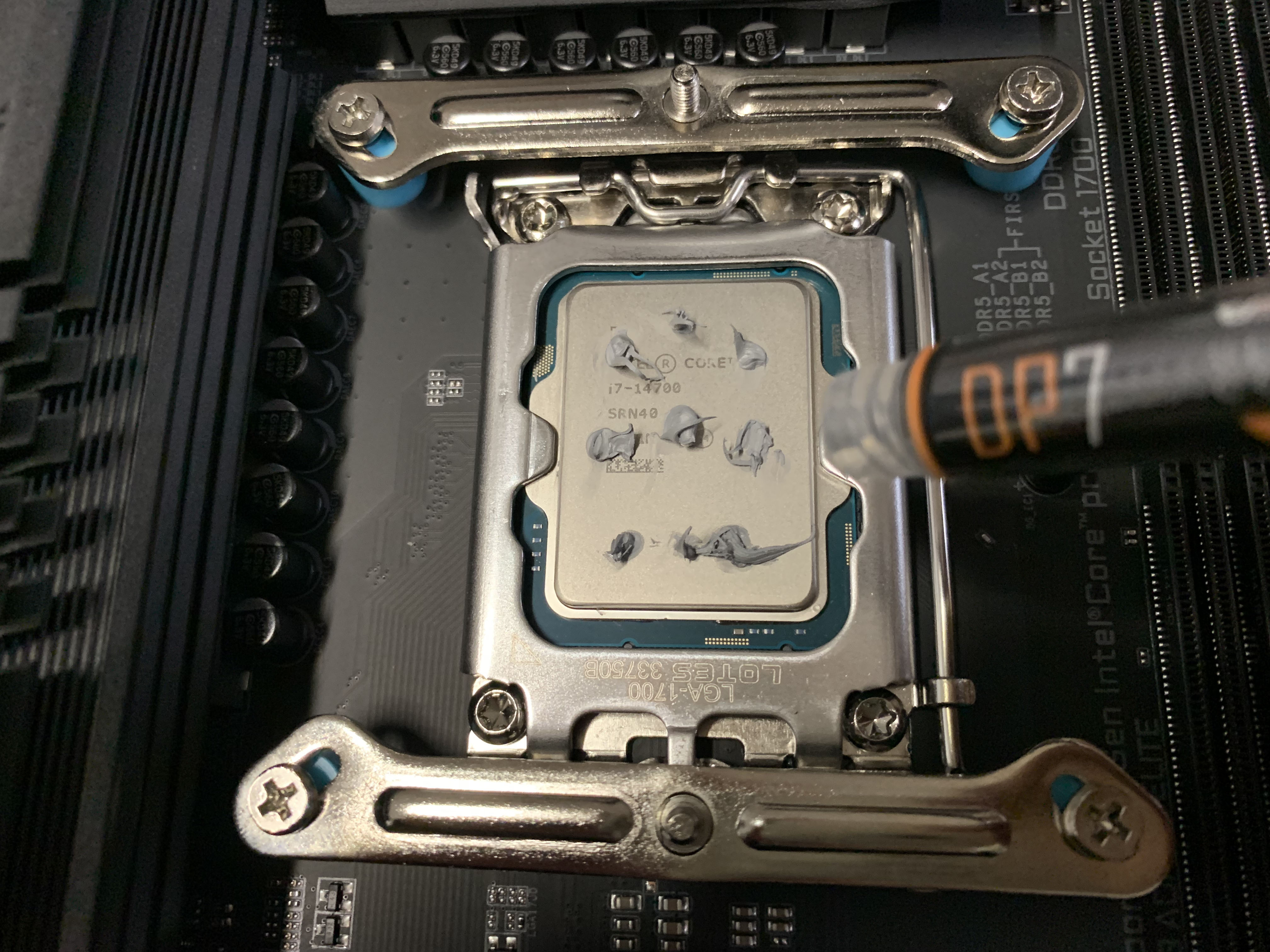 인텔 코어 i7-14700 설치, darkFlash D7 써멀구리스 도포 및 darkFlash ELLSWORTH D21를 설치합니다.