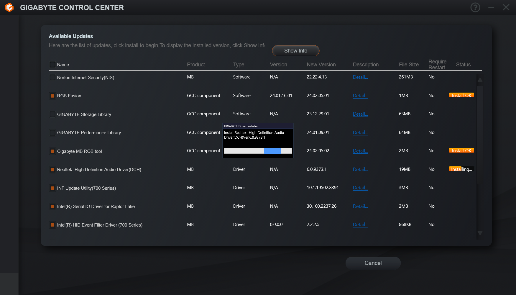 GIGABYTE Control Center에서 각종 드라이버 및 유용한 소프트웨어를 쉽고 간편하게 설치를 할 수 있습니다.