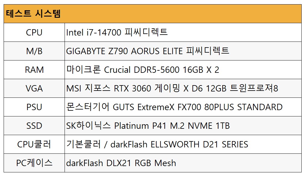 지금까지 인텔 코어 i7-14700과 기가바이트 Z790 AORUS ELITE 피씨디렉트에 대해서 살펴보고, 조립 및 각종 테스트를 진행해보았습니다.
