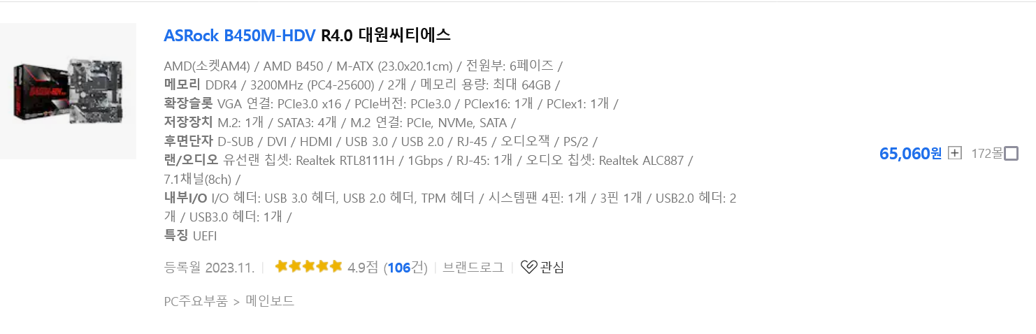 현재 라이젠 5000시리즈로 컴퓨터를 조립하는 분이라면, 가성비 원탑 제품으로 ASRock B450M-HDV R4.0을 망설이지 않고 적극 추천드립니다.