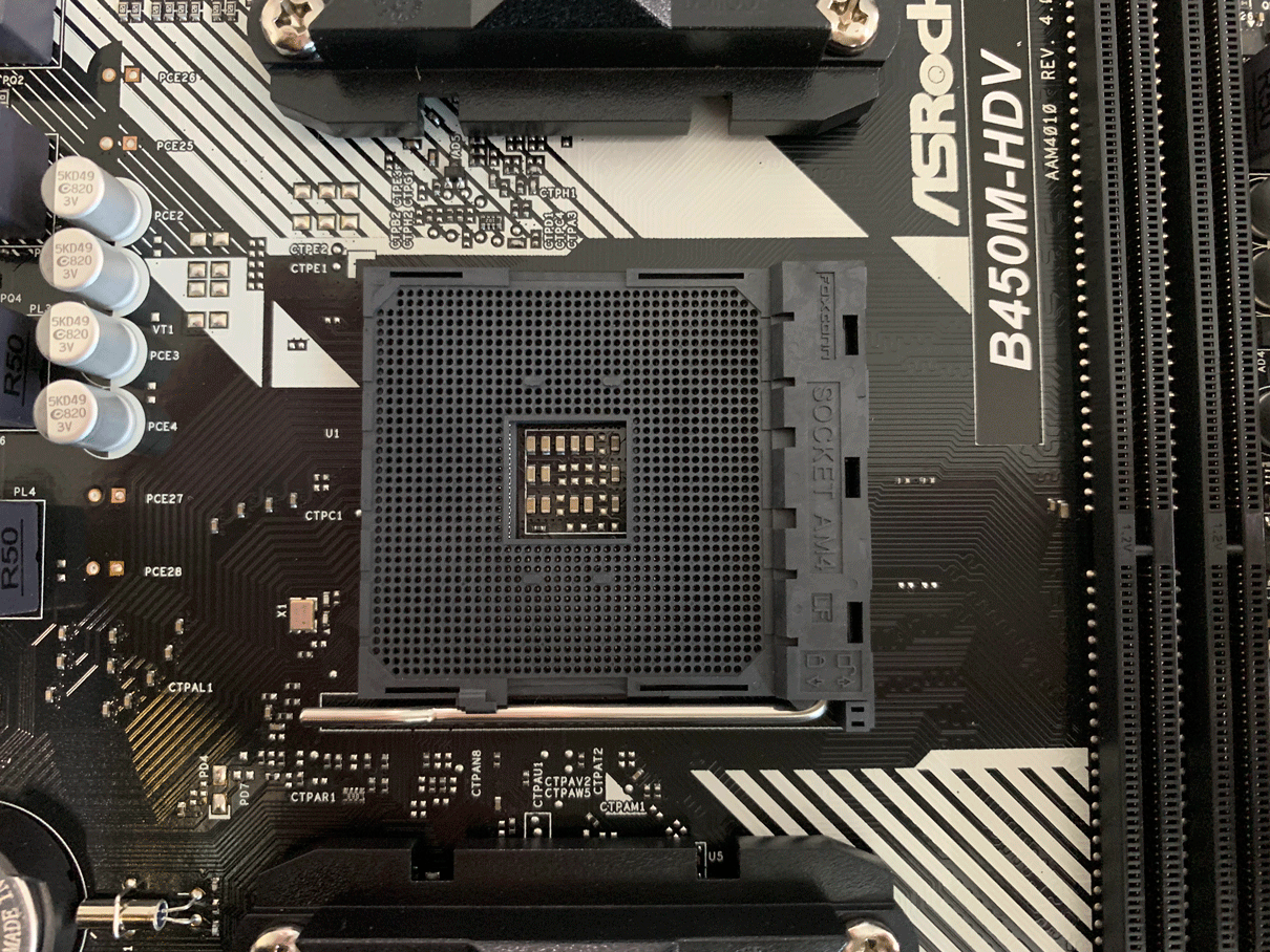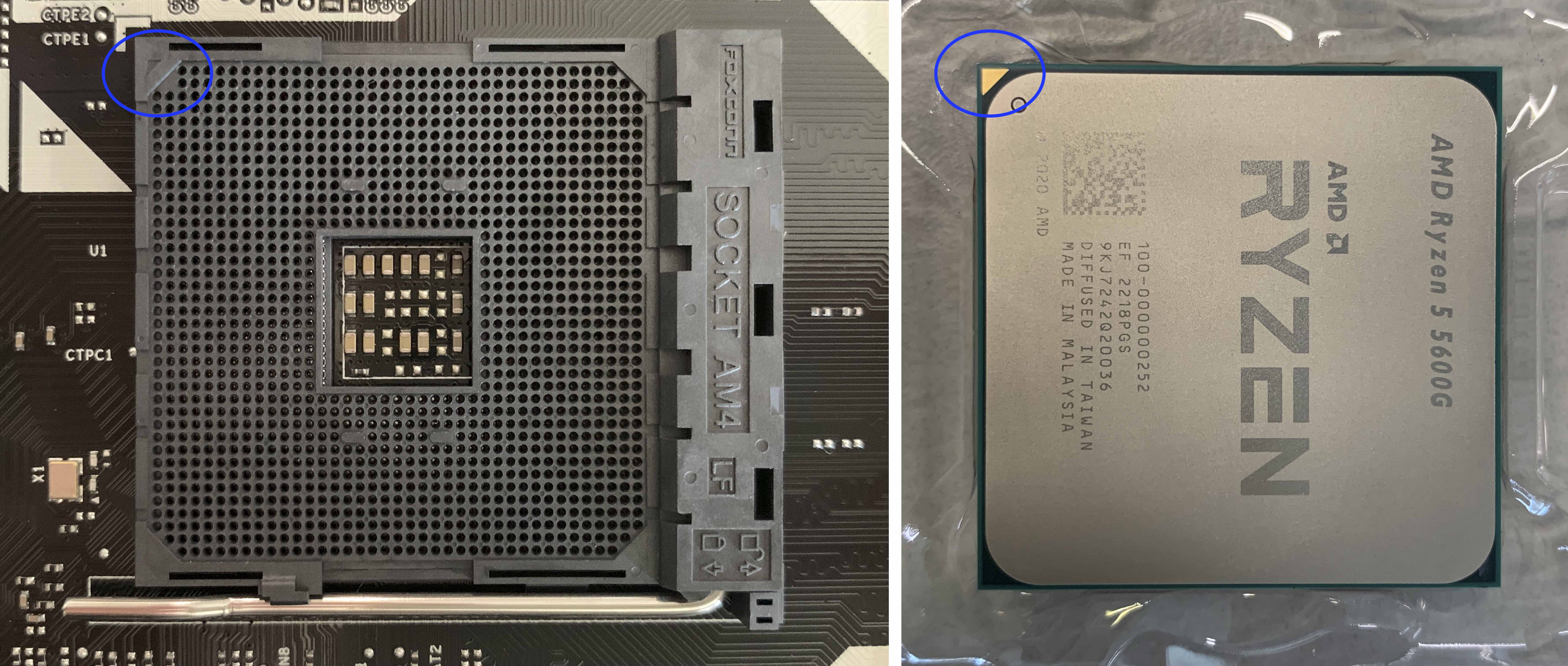 AM4소켓은 PGA방식이라 장착시 헷갈릴 수 있는데, 표시해둔 삼각형을 보고 방향을 잡으면 쉽습니다.