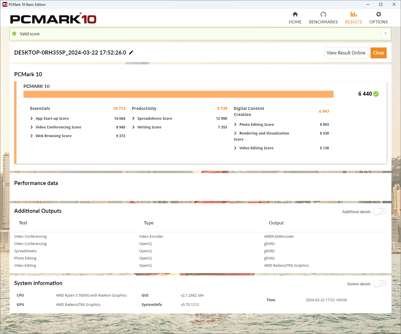 라이젠 5600G는 PBO Enabled + Golbal C-state Control Enabled, 램은 3600(1.37V, 18-22-22-22-44)클럭으로 설정해서 테스트를 진행했습니다. (램 오버클럭은 무난하게 사용하기 위해서, 전압은 넉넉하게, 타이밍은 타이트하게 쪼이지는 않았습니다.)