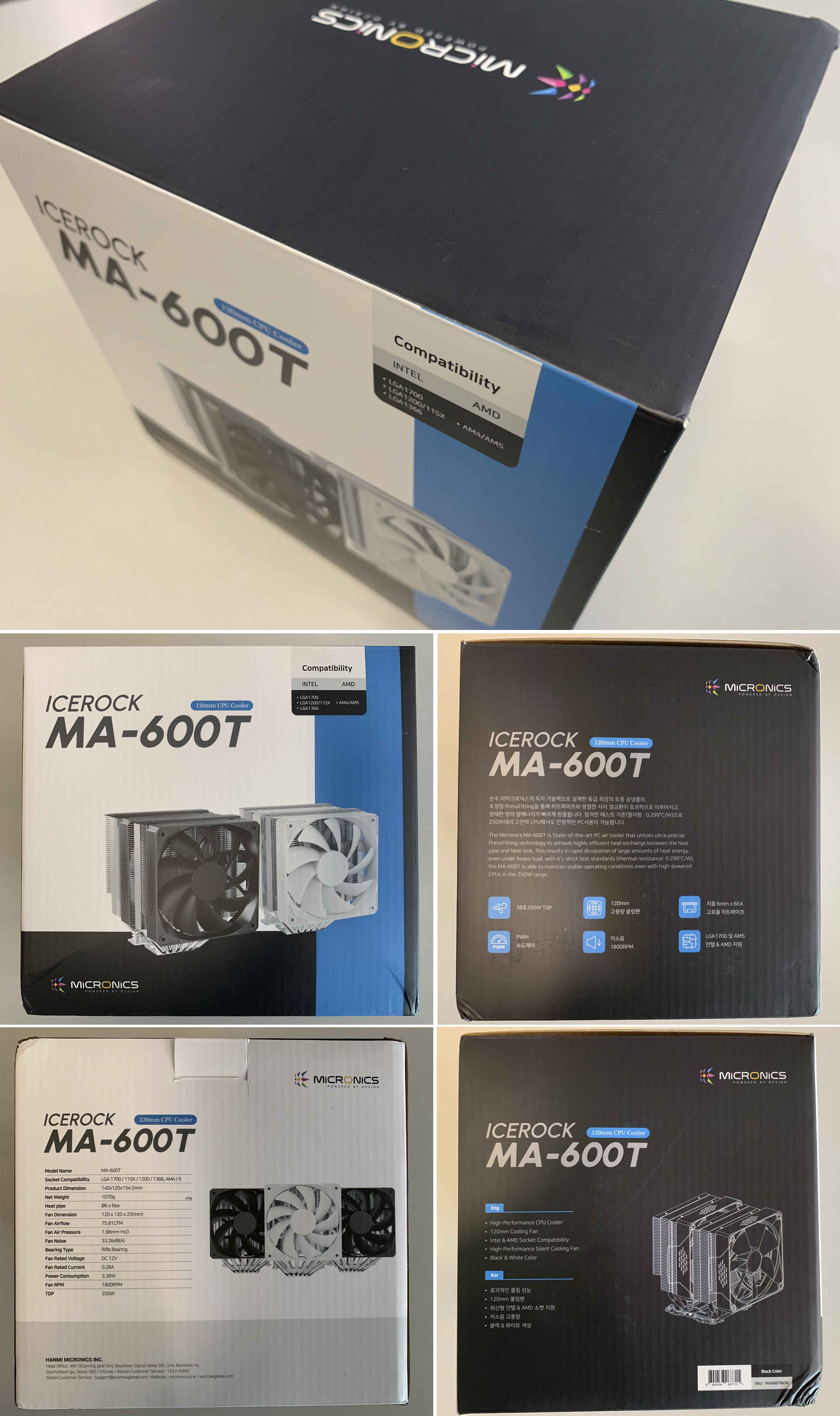 최상의 쿨링을 위한 듀얼팬 구조로, 최대 TDP 250W 지원하고 쾌적한 성능이 기대되는데, 세련된 디자인의 상단 히크싱크 커버를 갖춘 마이크로닉스 ICEROCK MA-600T 제품 소개를 시작하겠습니다.