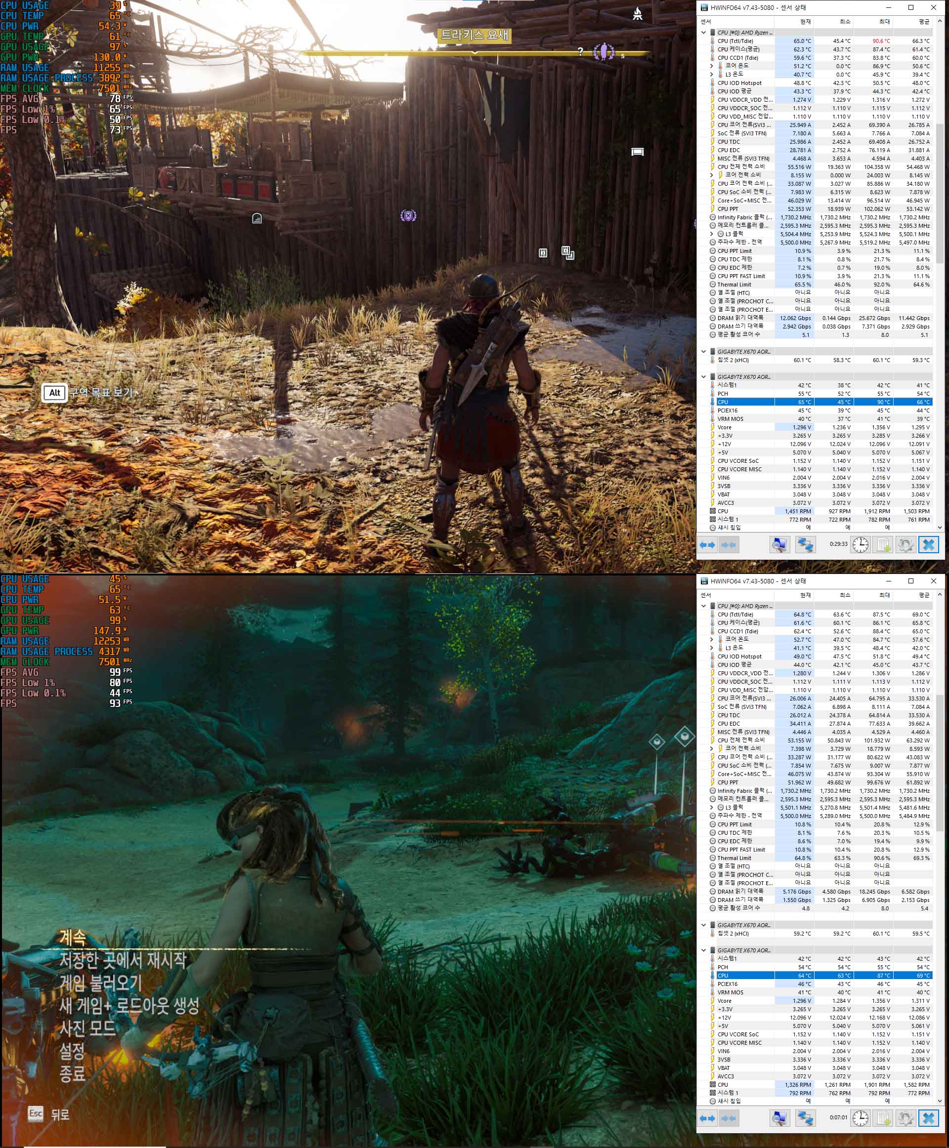 위 테스트에서 성능이 더 좋은 결과인 Pbo Curve Optimizer 환경에서 어쎄신 크리드 오딧세이, 호라이즌 제로 던을 플레이하는 동안 정숙한 환경에서, 안정적으로 플레이가 가능했습니다.