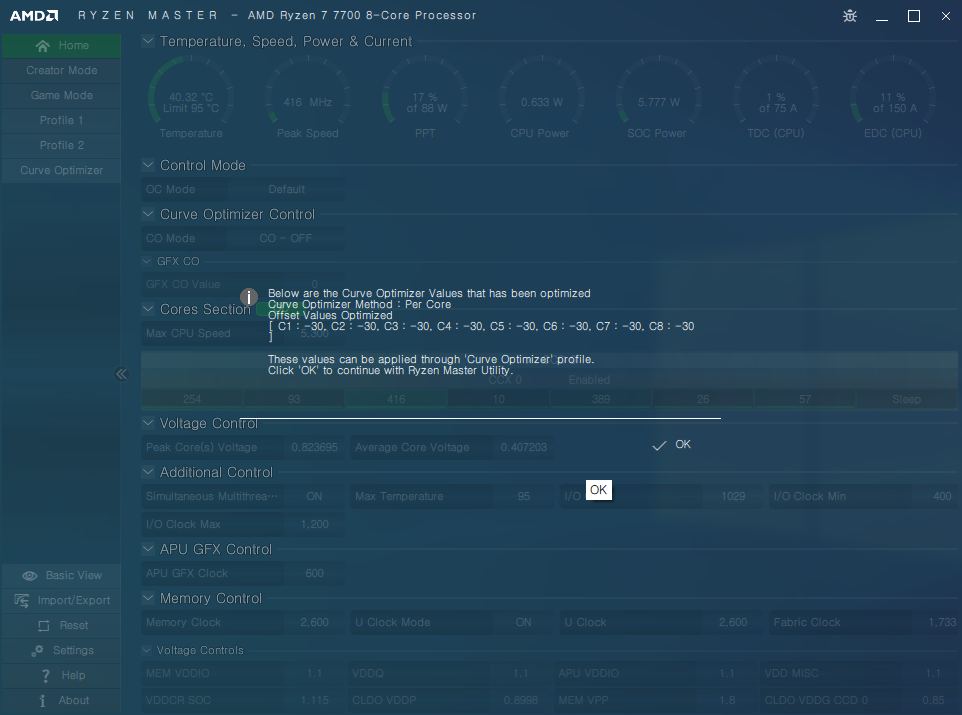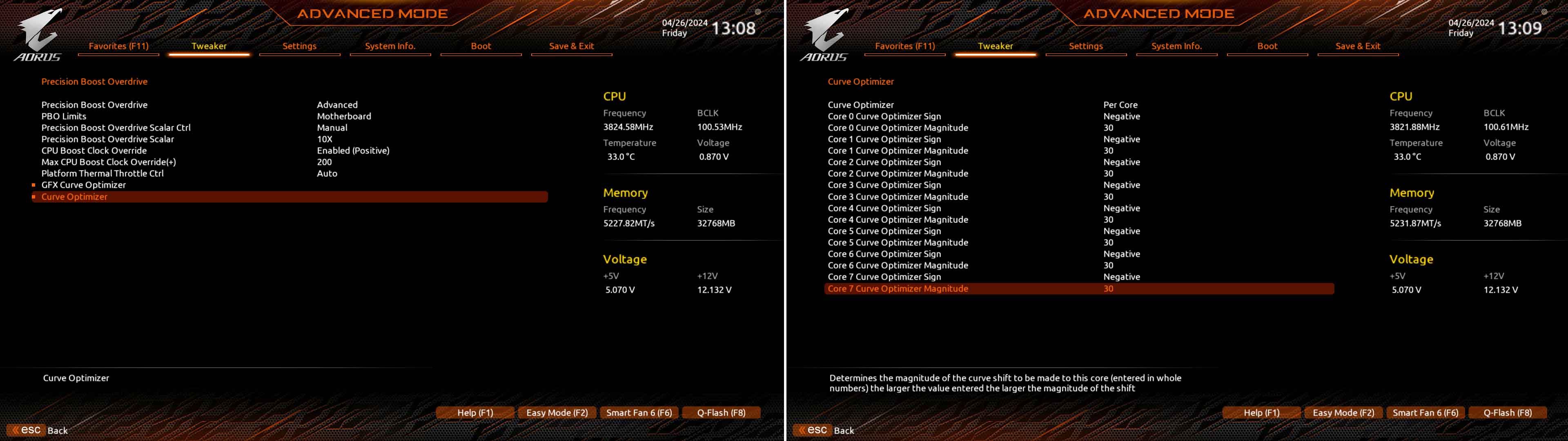 라이젠 마스터로 Curve Optimizer 설정값을 찾고, 바이오스에서 설정합니다.