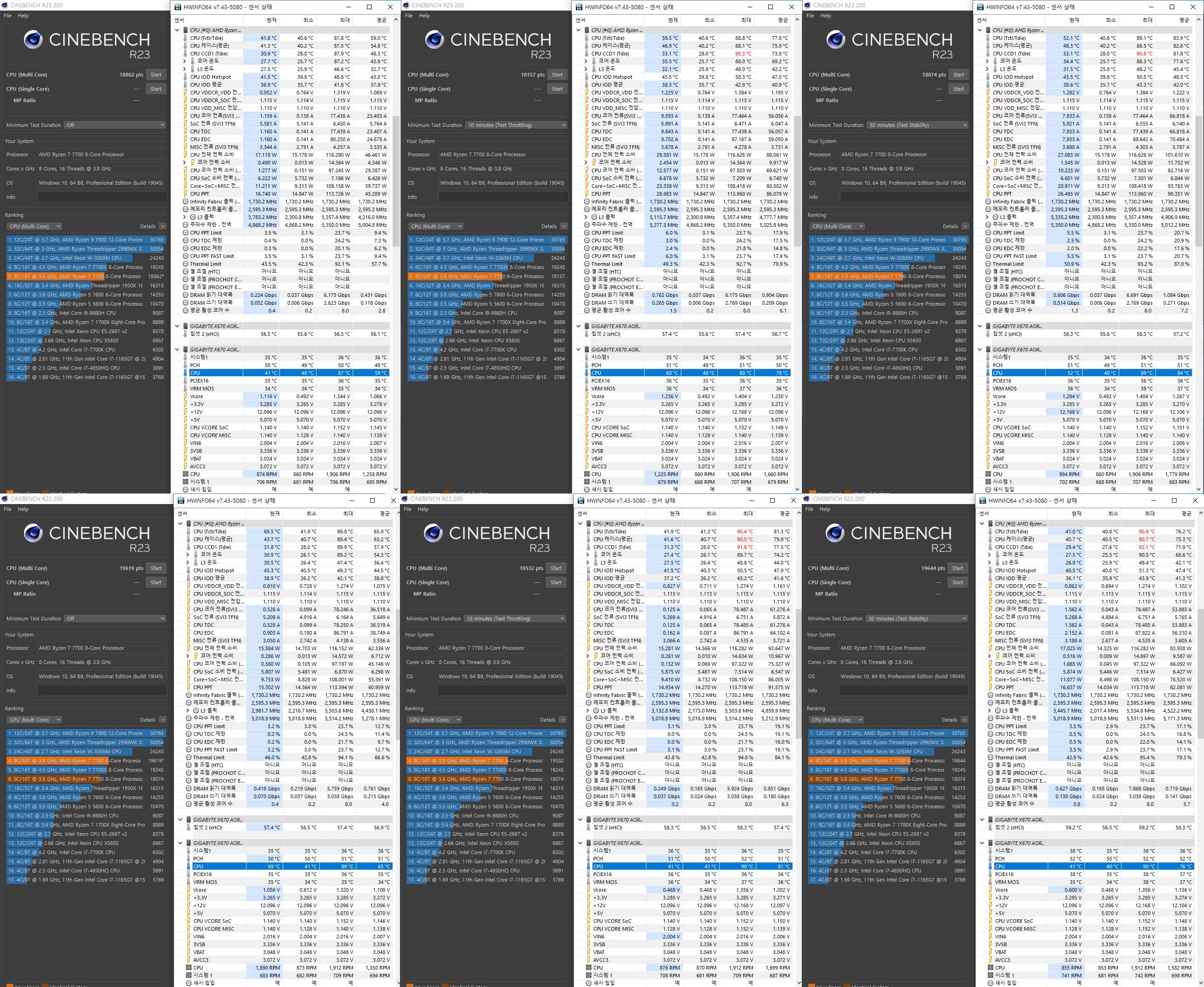 프로그램 CINEBENCH R23에서, 1회 / 10분 / 30분 멀티점수를 측정했습니다.