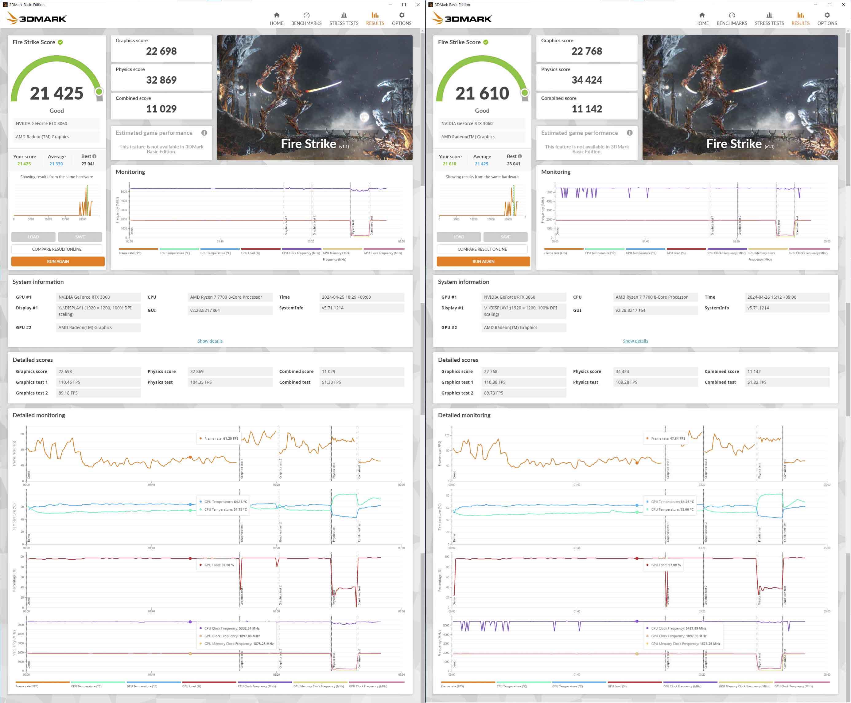 파이어 스트라이크와 비슷하게 PBO Enabled보다 Curve Optimizer 환경에서 더 나은 결과가 측정되었습니다.