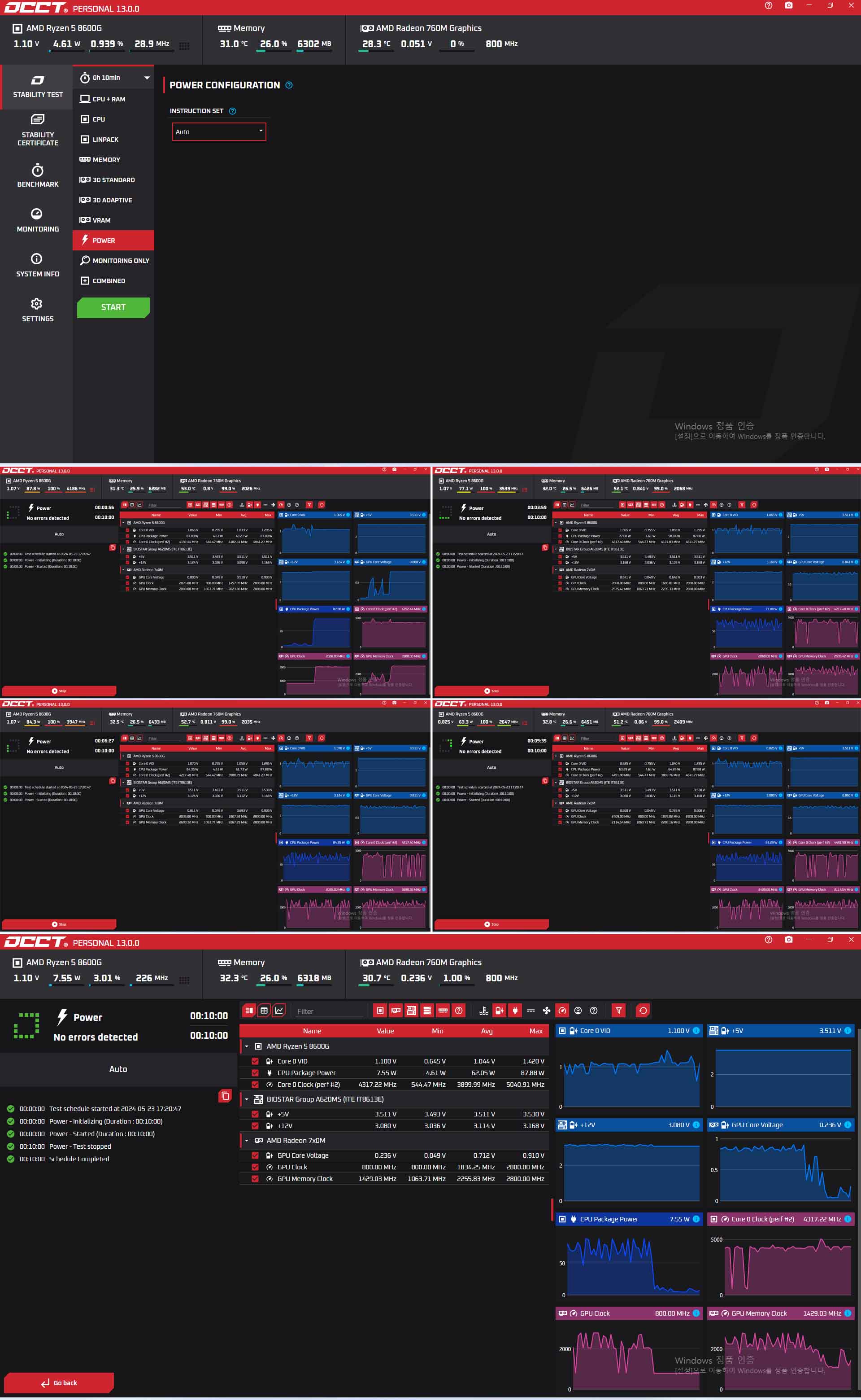 1) 라이젠5 8600G 시스템에서 OCCT로 파워테스트를 진행했습니다.