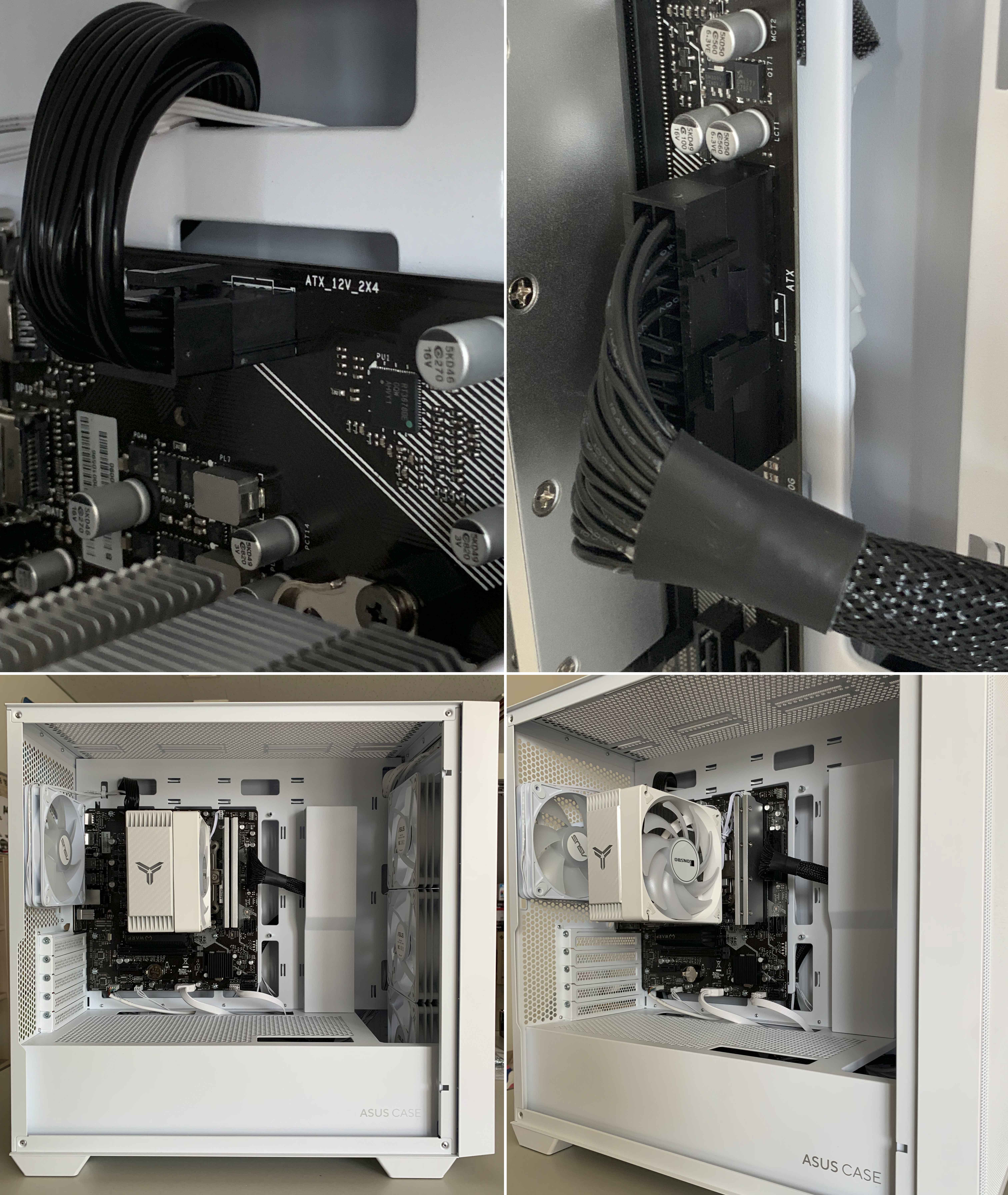 24핀 전원 케이블과, 메인보드는 8핀만 포트에 연결하고 조립을 마무리합니다.