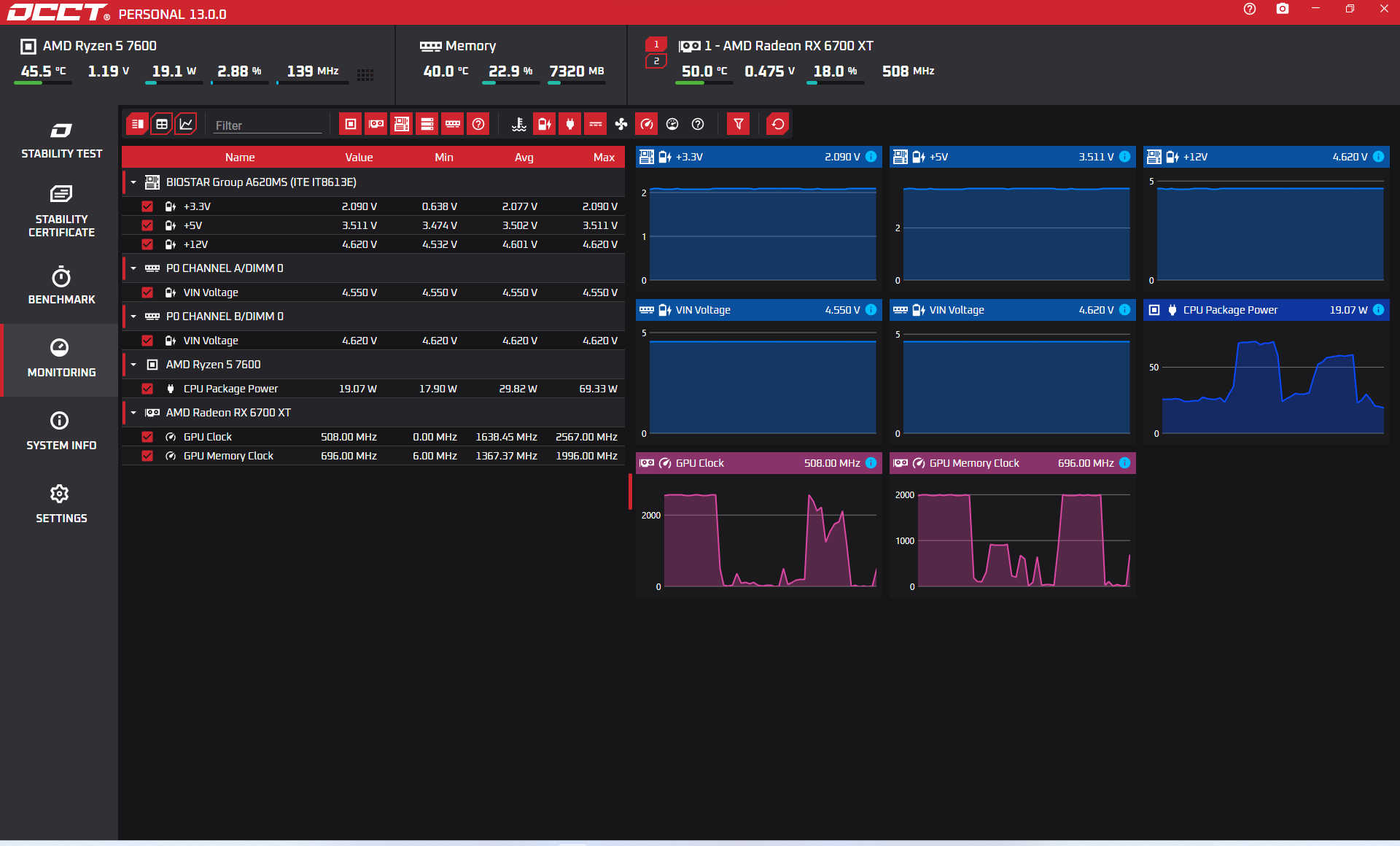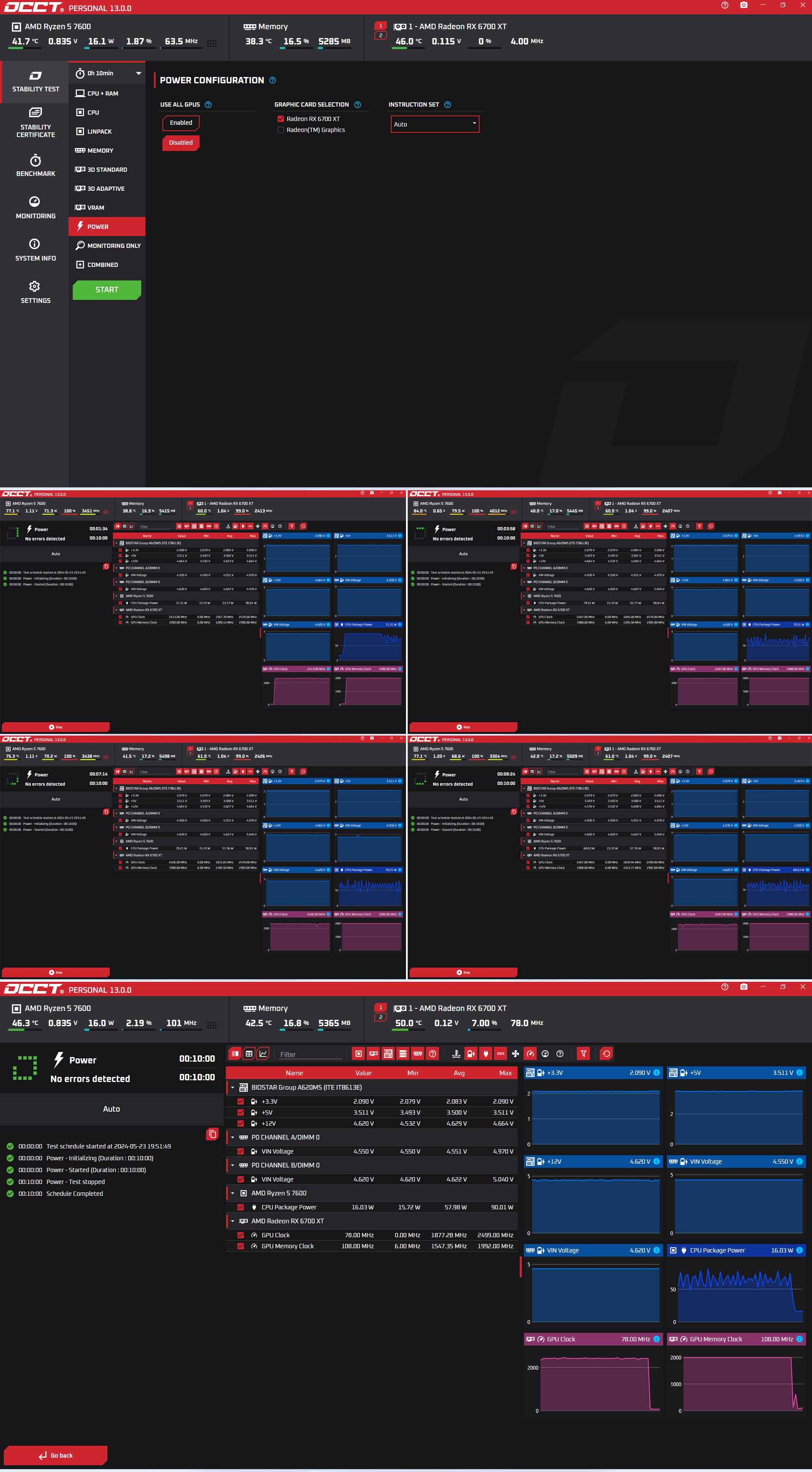 2) 라이젠5 7600 + 6700XT 시스템에서 OCCT로 파워테스트를 진행했습니다.