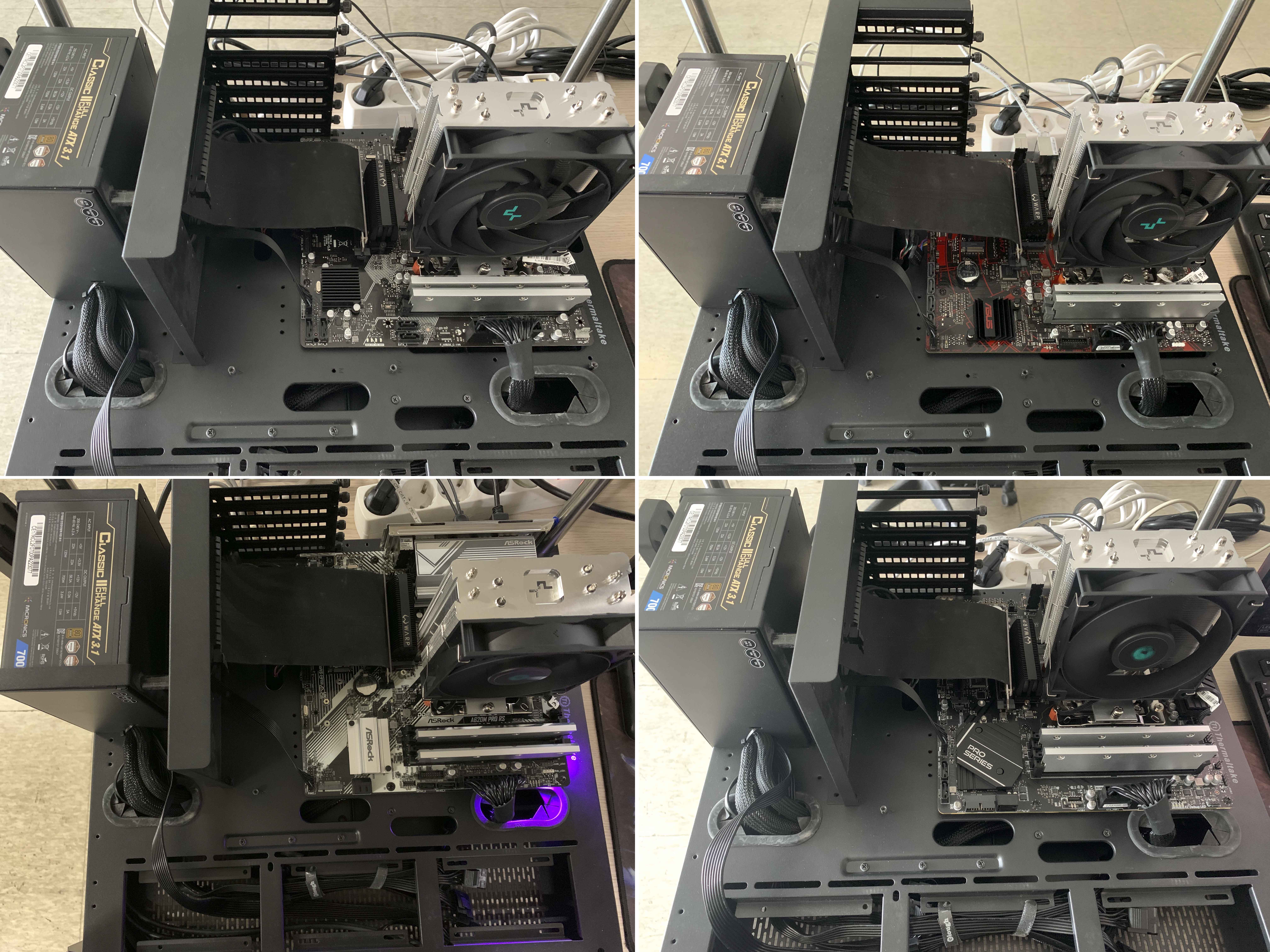 파워서플라이에서 발생하는 팬 소음 테스트를 위해서 오픈형 케이스에 다시 조립해서 테스트를 진행했습니다.