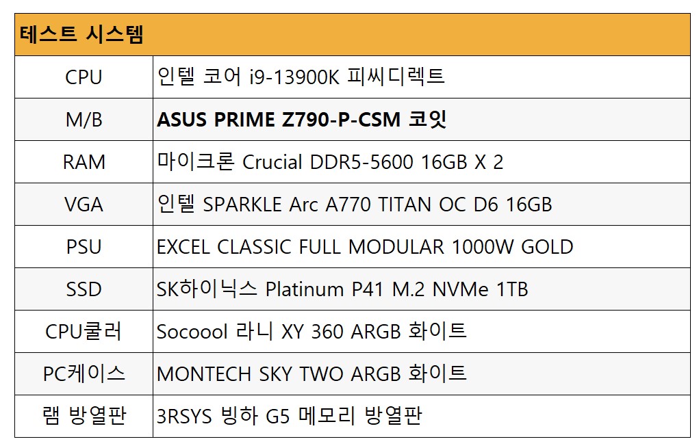 지금까지 ASUS PRIME Z790-P-CSM 코잇 메인보드에 대해서 살펴보고, 조립 및 테스트를 해보았습니다.