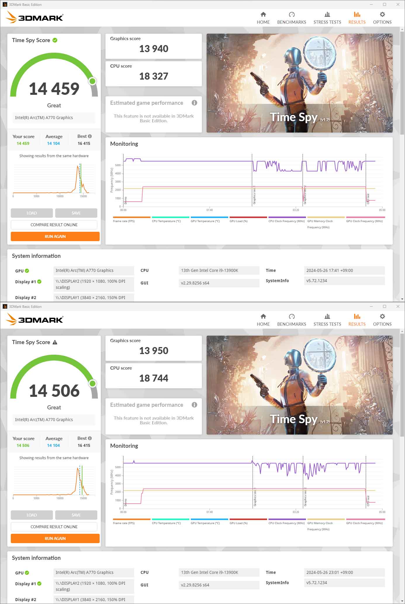 3DMARK 타임 스파이에서 변경전 14459점, 변경후 14506점으로 (+47점) 향상되었습니다.