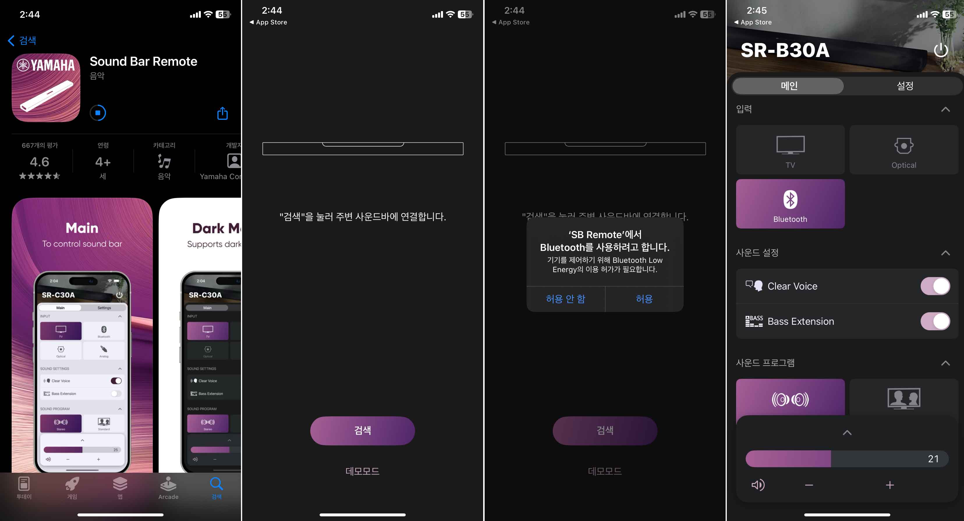 아이폰 앱스토어에서 야마하에서 배포하고 있는 Sound Bar Remote 앱을 받고 페어링을 해보았습니다.