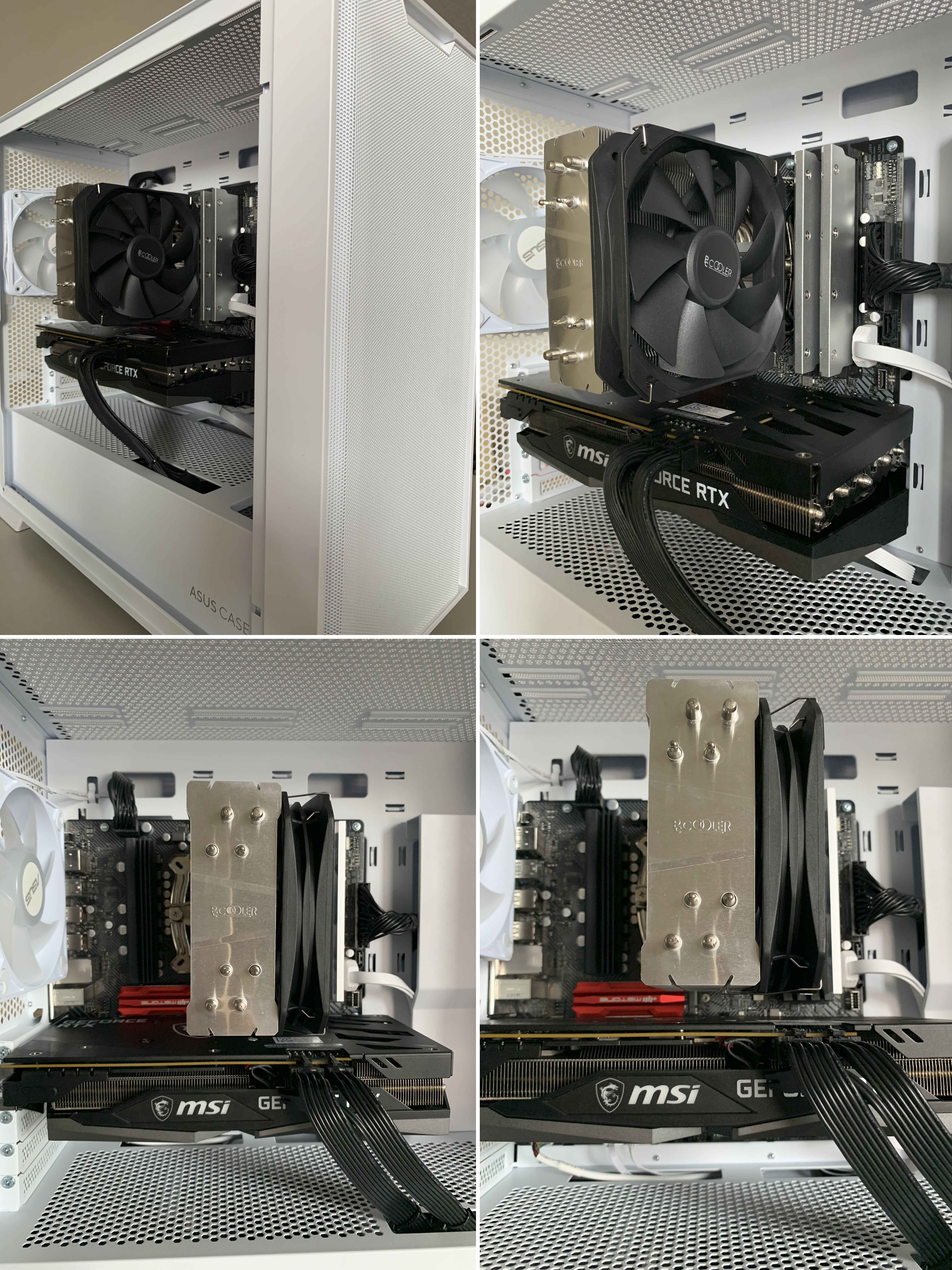 쿨러 높이가 157mm이라 테스트에 사용한 케이스 ASUS A21 PLUS에 간섭이 일어나지 않고 넉넉한 간격을 유지했습니다.