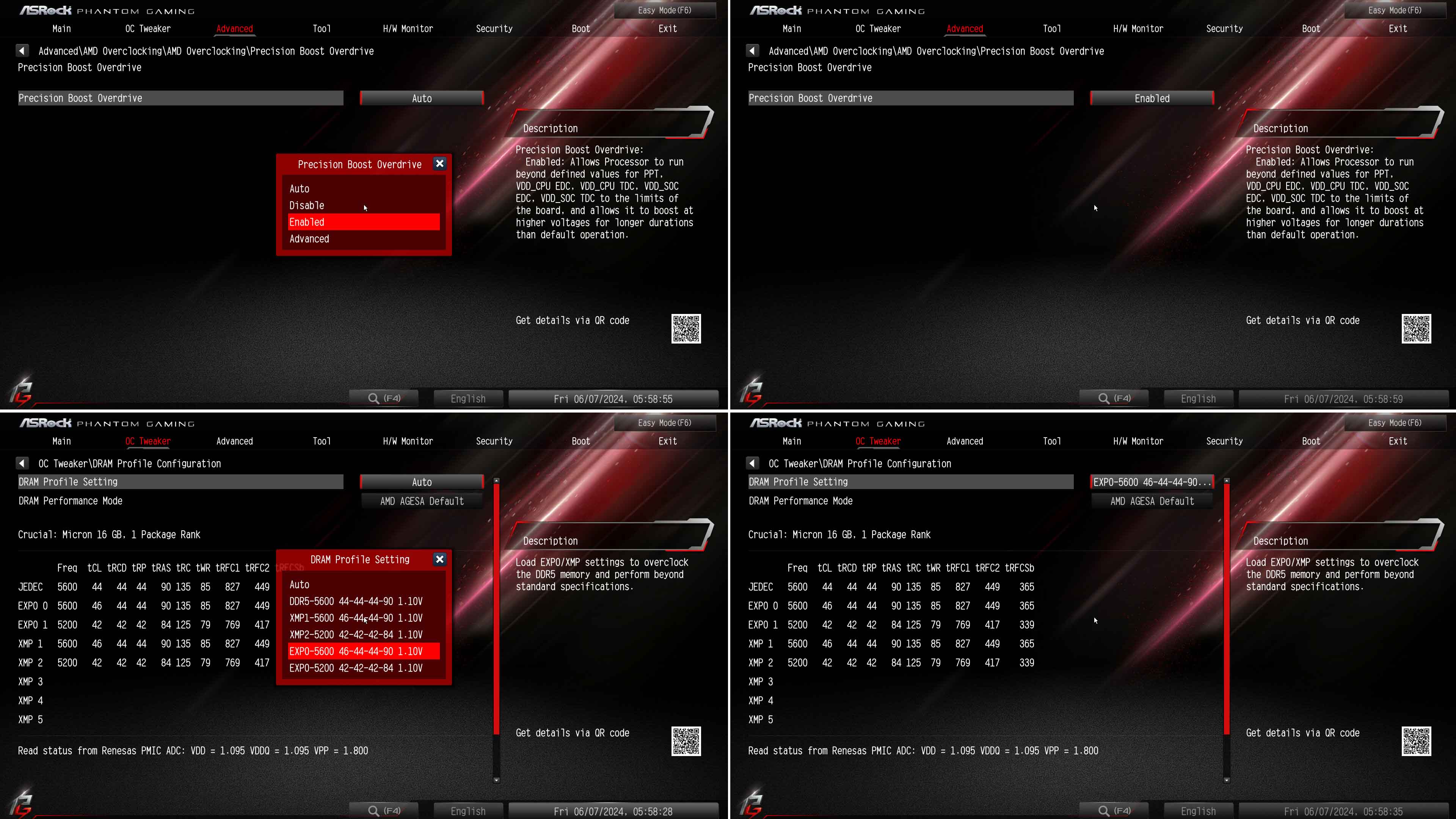 CPU는 PBO Enabled, 램은 EXPO 5600 으로 설정했습니다.