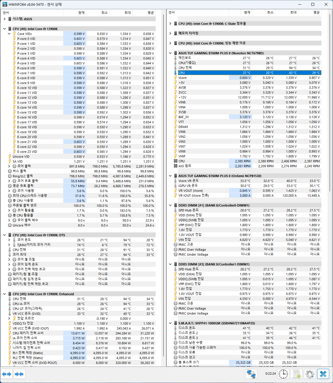 10분간 풀로드 상태에서 촬영한 영상입니다. 성능 하락 없이, i9-13900K 온도를 잘 잡아주고 있습니다.