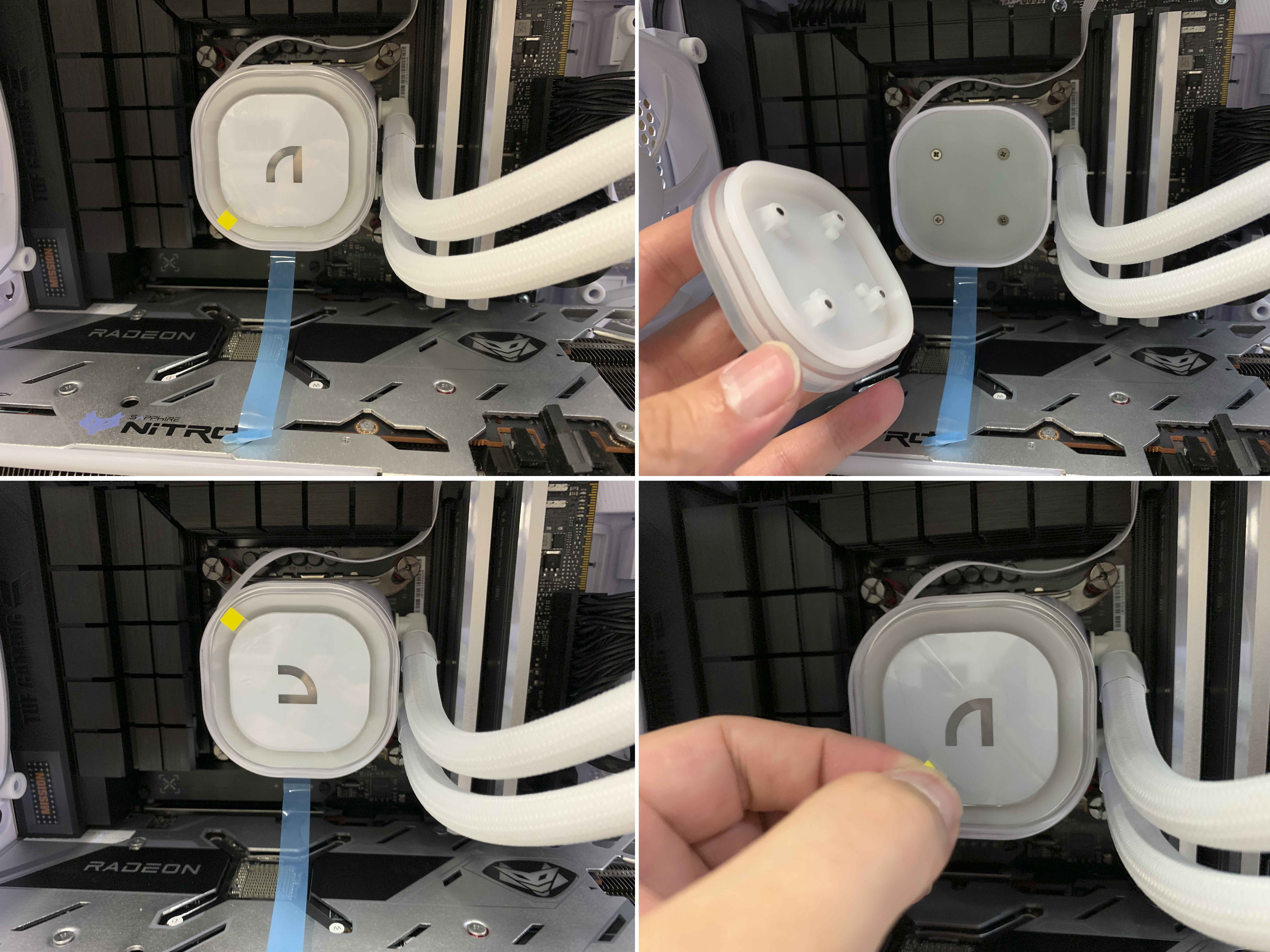 튜브 방향 때문에 몇번이고 써멀구리스를 다시 도포하면서 펌프를 고쳐 고정했는지,