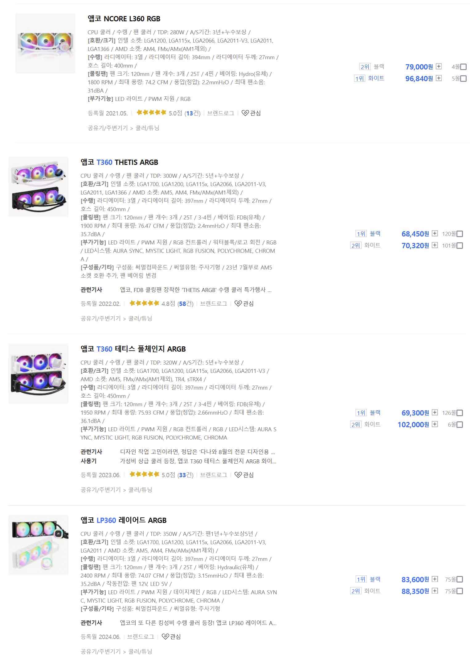 앱코 LP360 레이어드 ARGB 화이트 수랭쿨러필드테스트 2024. 7. 2. 21:18728x90