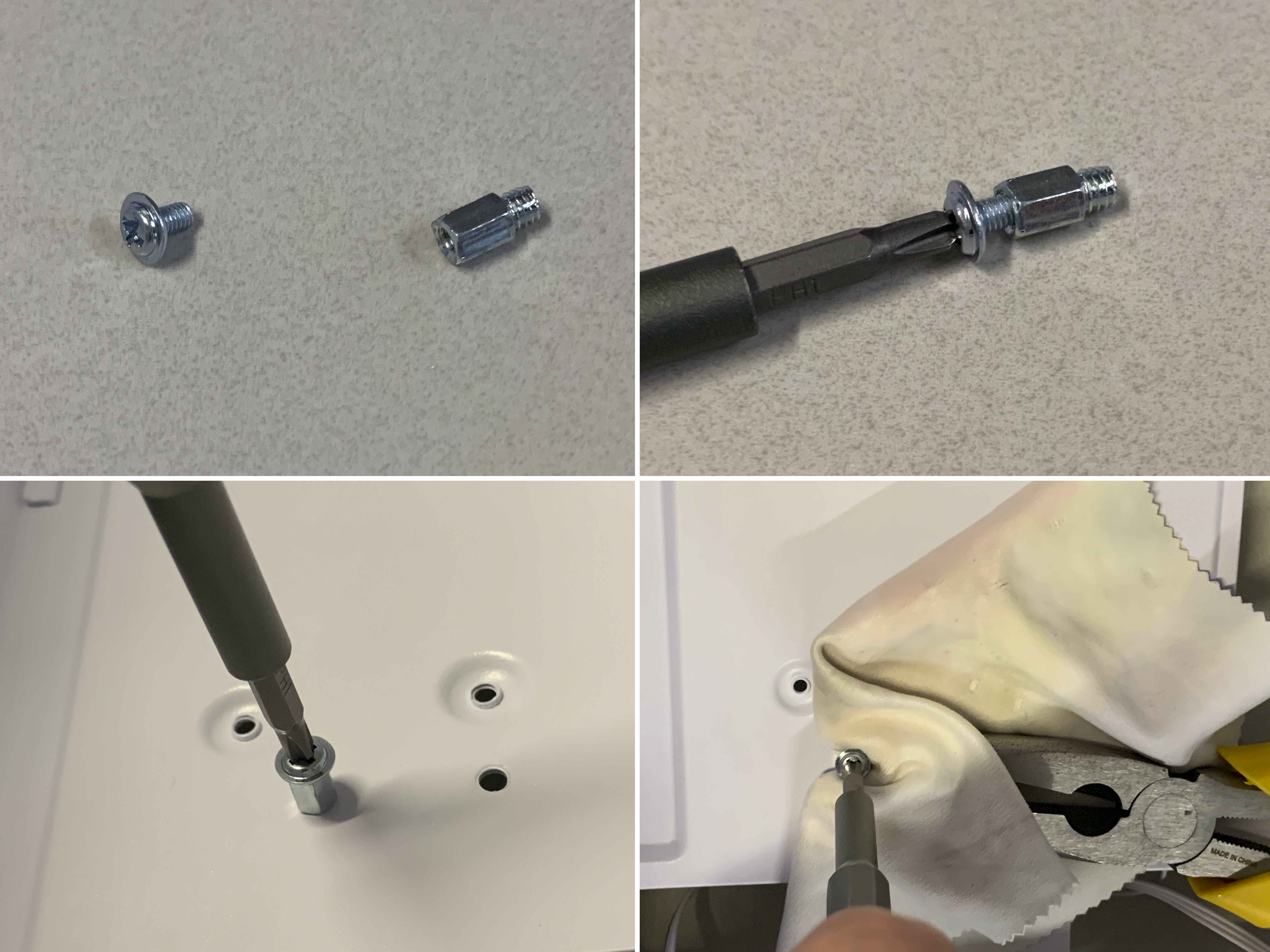 고정나사와 기둥(스탠드오프)을 미리 연결한 다음, 케이스에 기둥이 고정되도록 설치합니다.