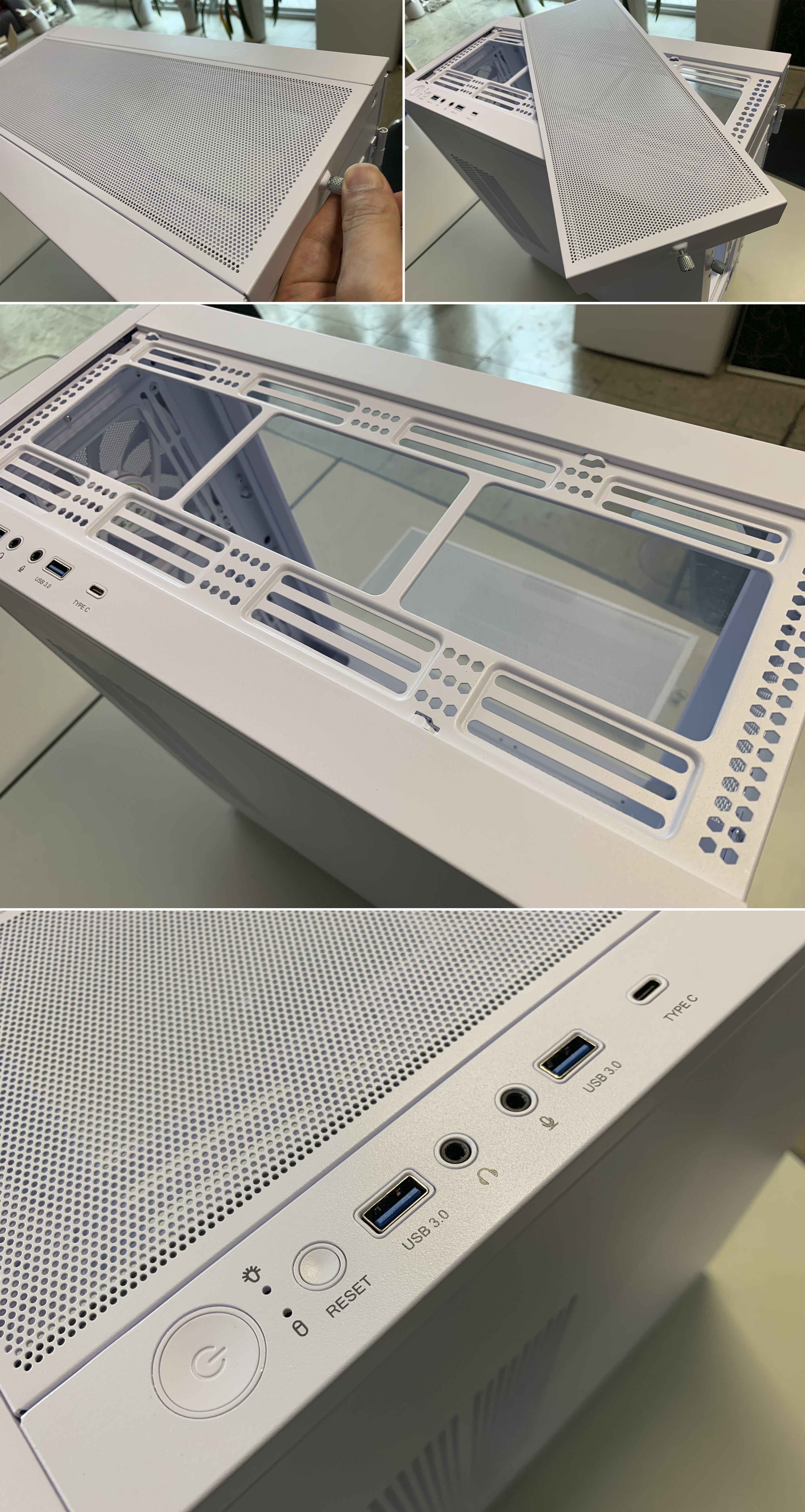 쿨링을 위한 타공과 케이블이 지나가는 홀이 알맞게 배치되어 있습니다.