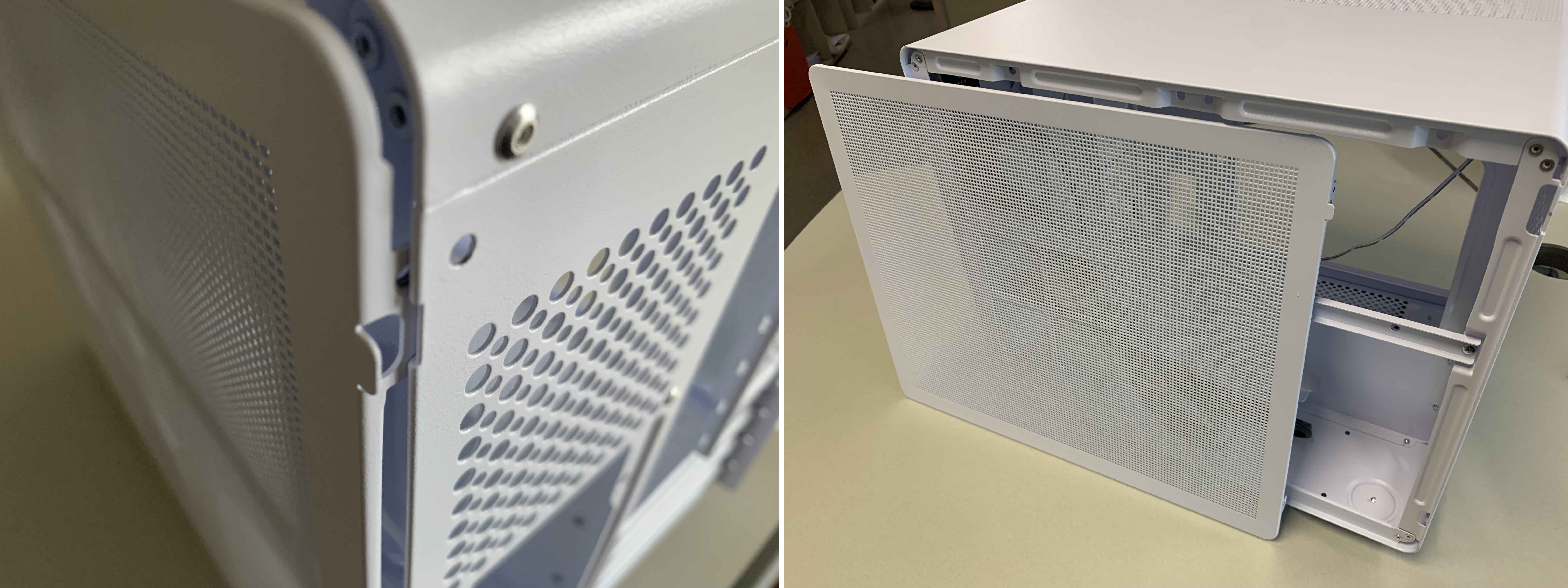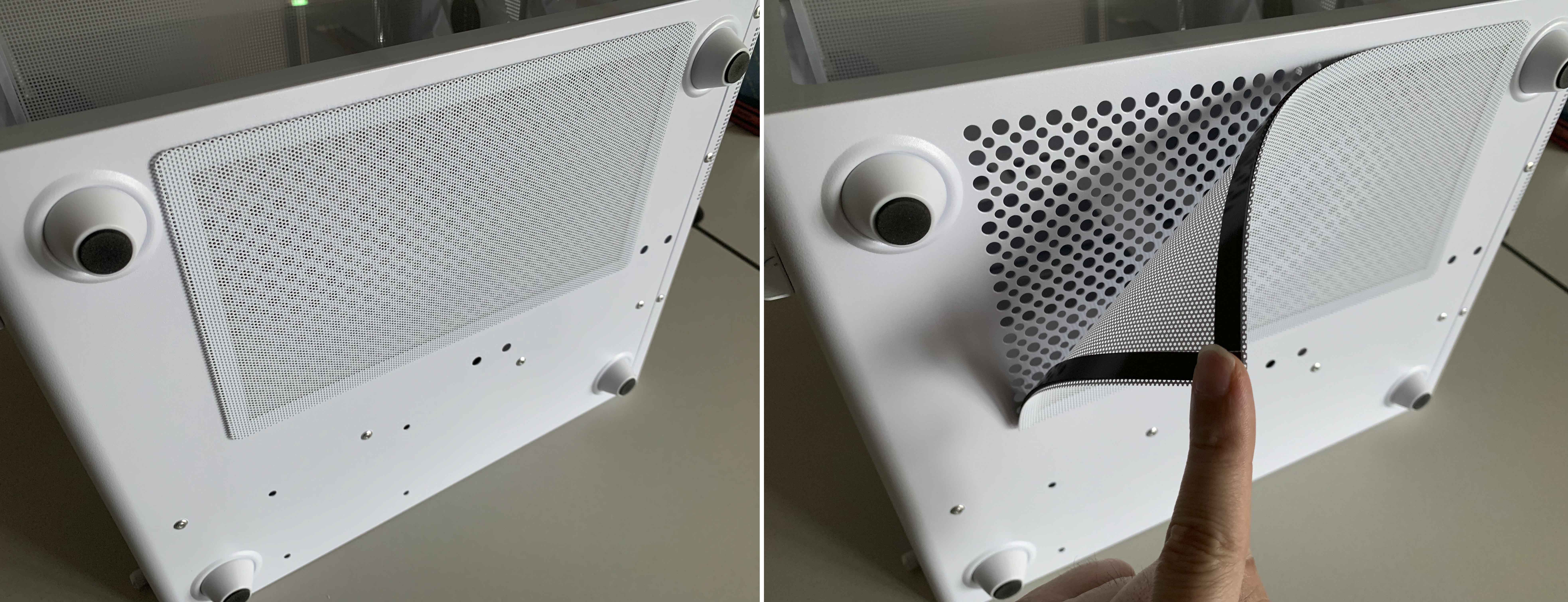 하이엔드 스피커에 사용되는 방식의 원뿔형 진동 방지 스탠드가 적용되었는데, 바닥면과 알맞은 거리를 두어 외부의 차가운 공기를 원활히 유입할 수 있도록 설계 되었습니다. 또한 마그네틱 먼지 필터가 이번에 업그레이드되어 먼지 유입을 막아 시스템을 보호하고 편리한 탈부착으로 먼지 털기가 유용한데, 쾌적한 시스템을 유지하기 좋습니다.