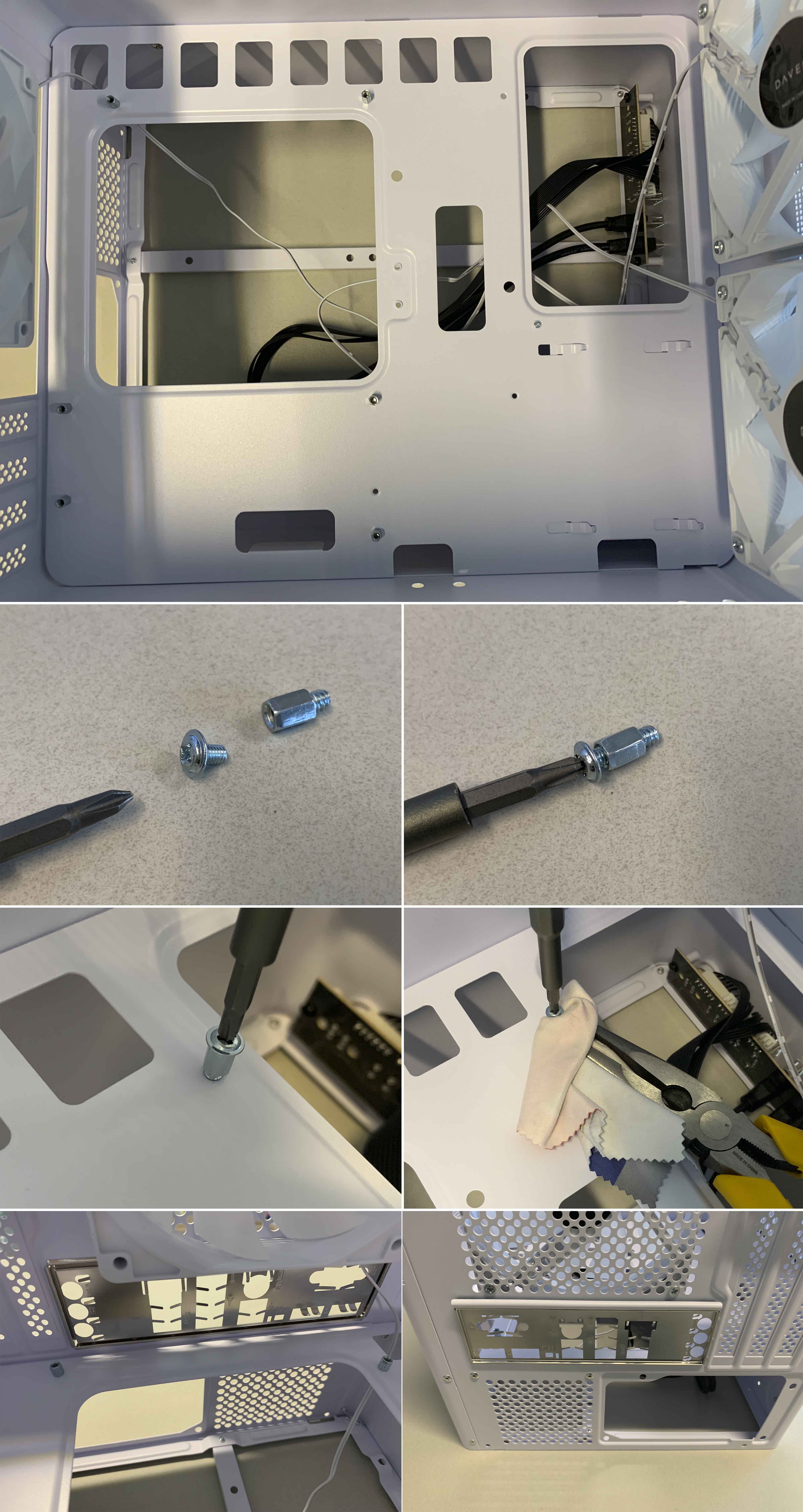 테스트에 사용할 메인보드의 위치에 맞게 비어있는 2곳에 기둥(스탠드 오프) 을 설치합니다.