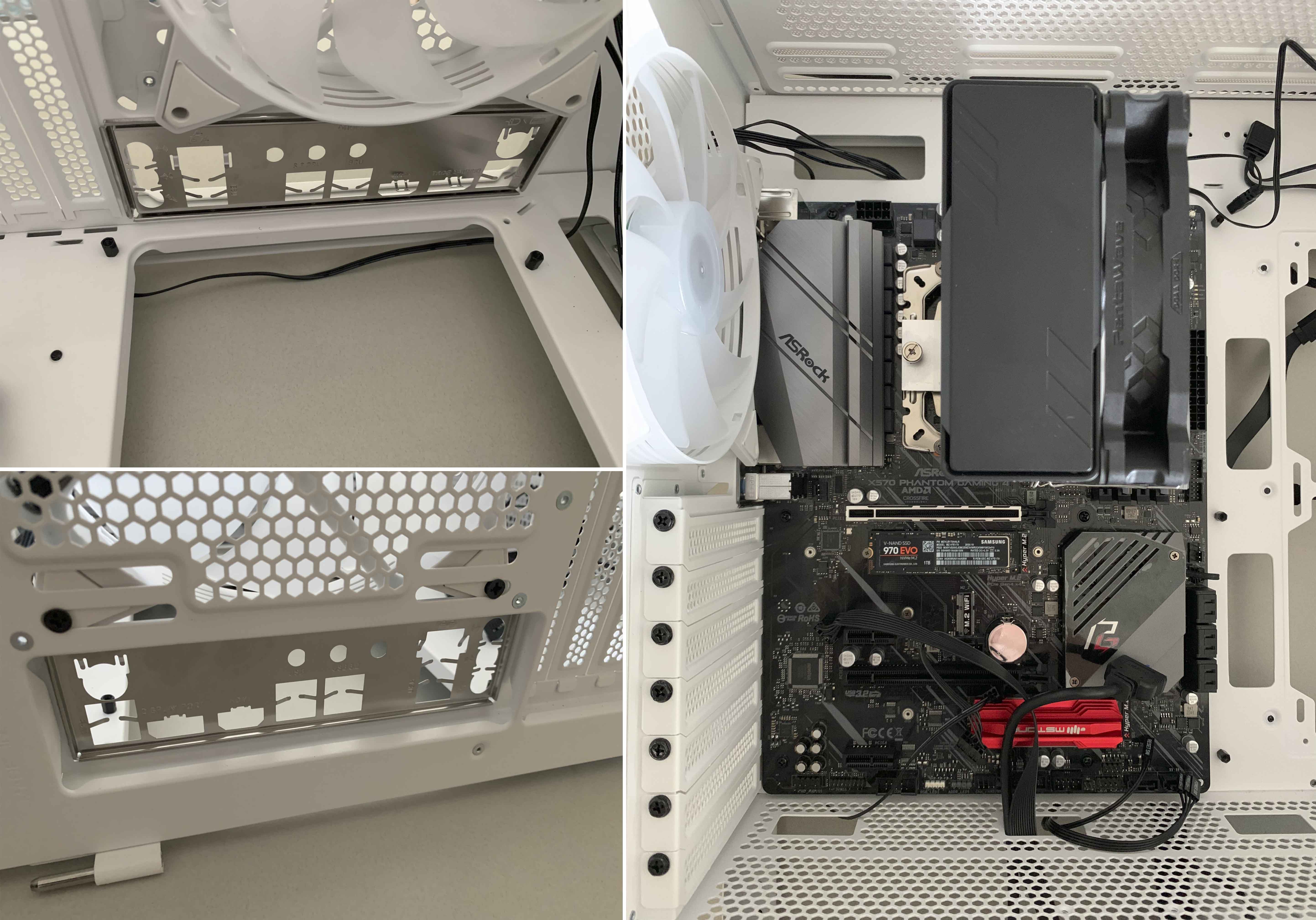 메인보드 백패널을 PC케이스에 먼저 설치하고, 메인보드를 고정나사로 고정합니다. 메인보드가 ATX 폼팩터 중에서도 가로 사이즈가 작은편에 속해서 기둥(스탠드오프)과 고정나사는 각각 6개씩 사용합니다.