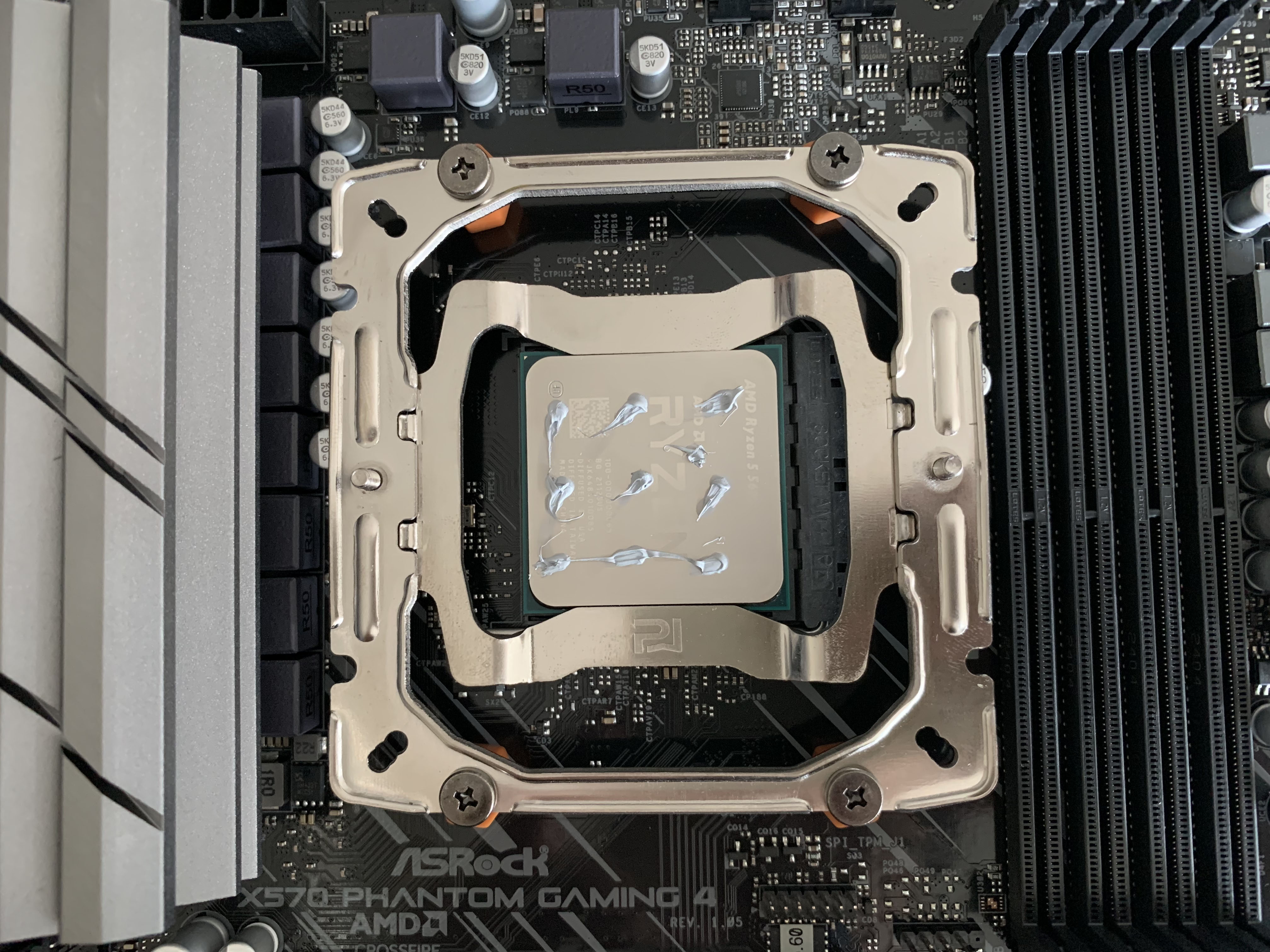 써멀컴파운드는 9개의 점으로, 가운데 점만 좀더 크게 도포하고 CPU쿨러를 장착했습니다.