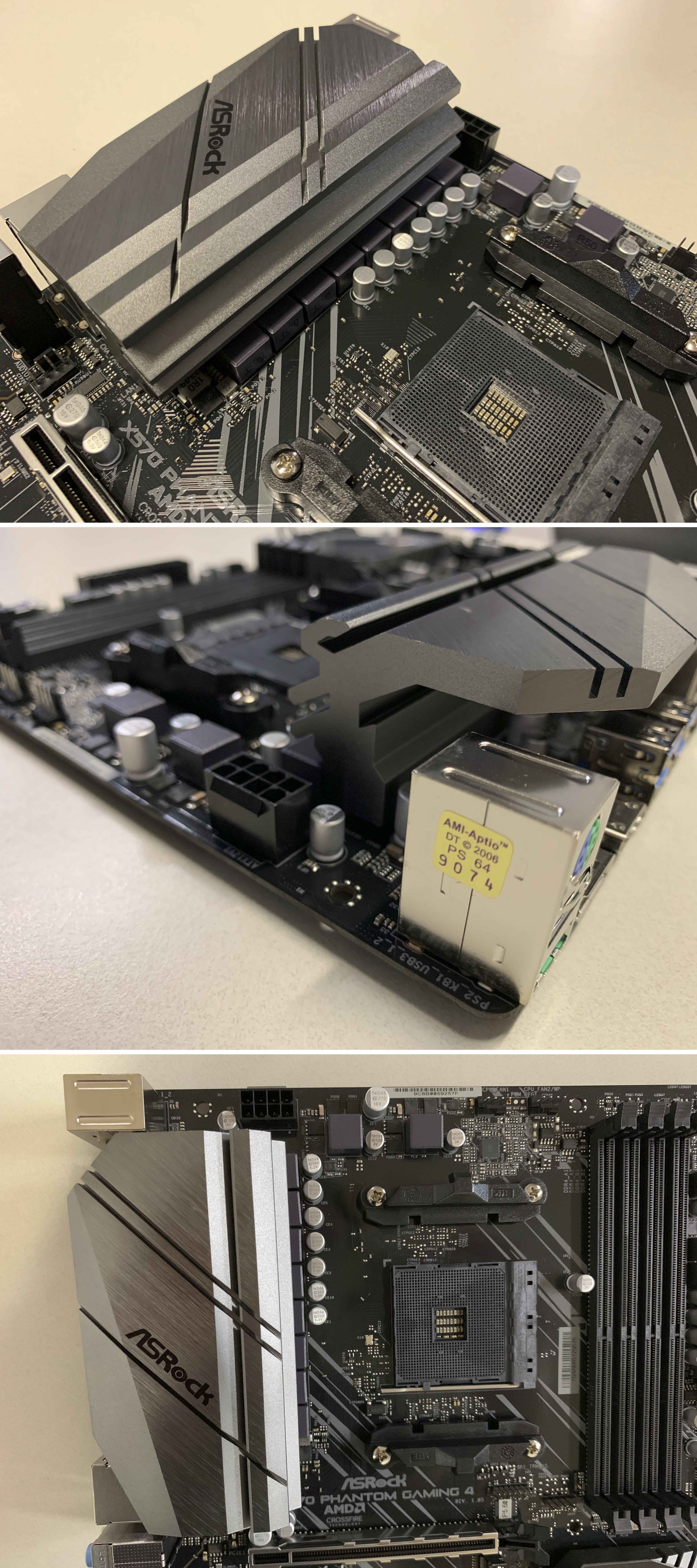 ATX 폼팩터 사이즈는 30.5 x 22.9 cm입니다. 블랙 PCB 바탕에 실버 방열판에 새겨진 ASRock 로고와 칩셋 방열판의 Phantom Gaming의 PG이니셜이 인상적인 디자인입니다.