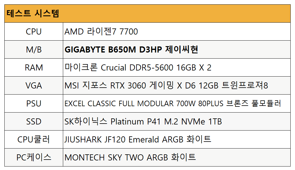 지금까지 GIGABYTE B650M D3HP 제이씨현 메인보드에 대해서 살펴보고, 조립 및 테스트를 해보았습니다.