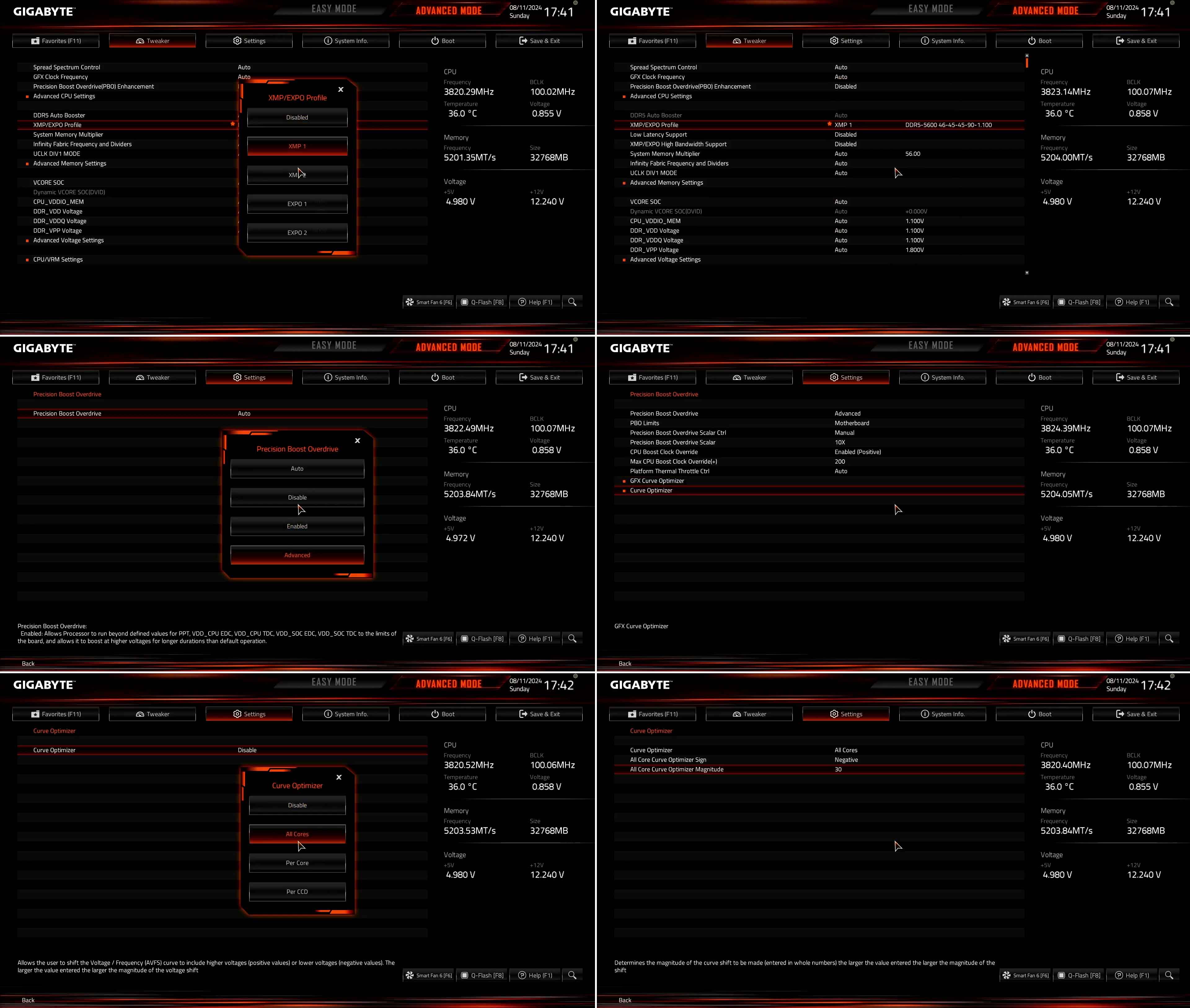 바이오스에서 램, PBO Curved Optimize 설정을 했으며, 자세한 부분은 동영상을 참고하시기 바랍니다.