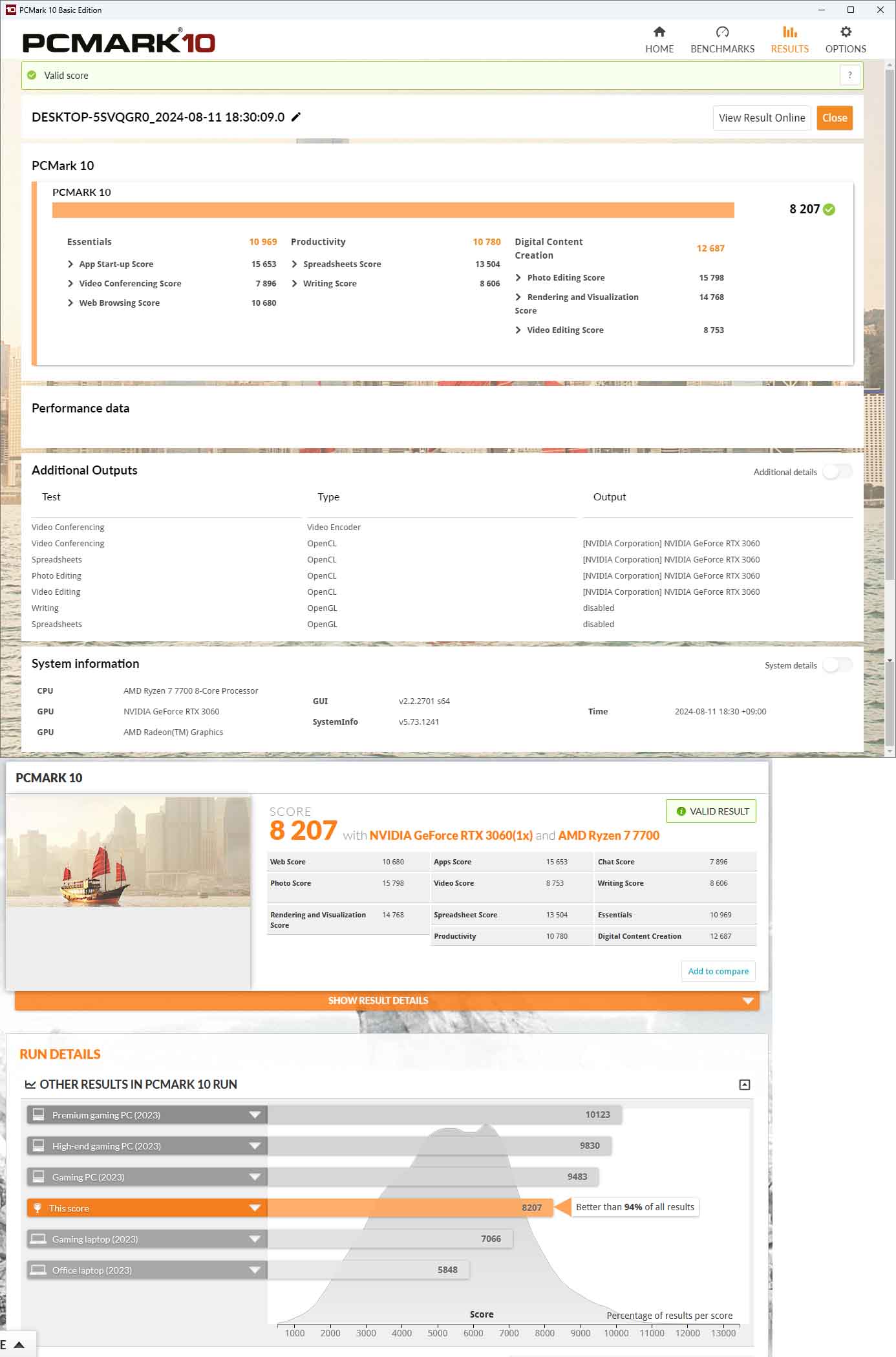 PCMARK10 프로그램에서 실행한 결과입니다.