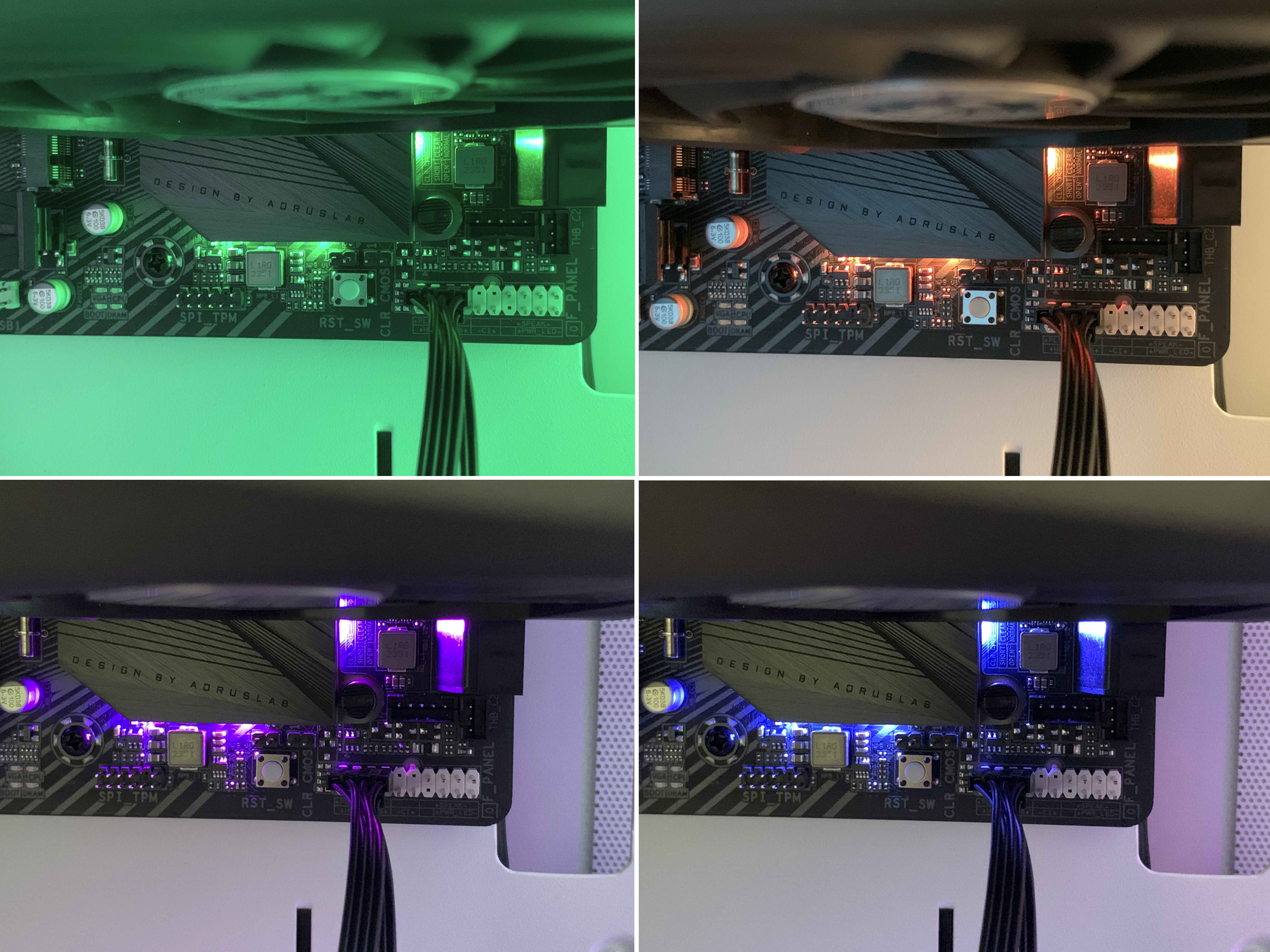 바이오스에서 하던 CPU, RAM, 팬속도 설정을 윈도우에서 손쉽게 할수 있습니다. 또한 메인보드에 연결된 LED의 RGB 색상을 변경하여 본인의 취향에 맞게 튜닝이 가능합니다.