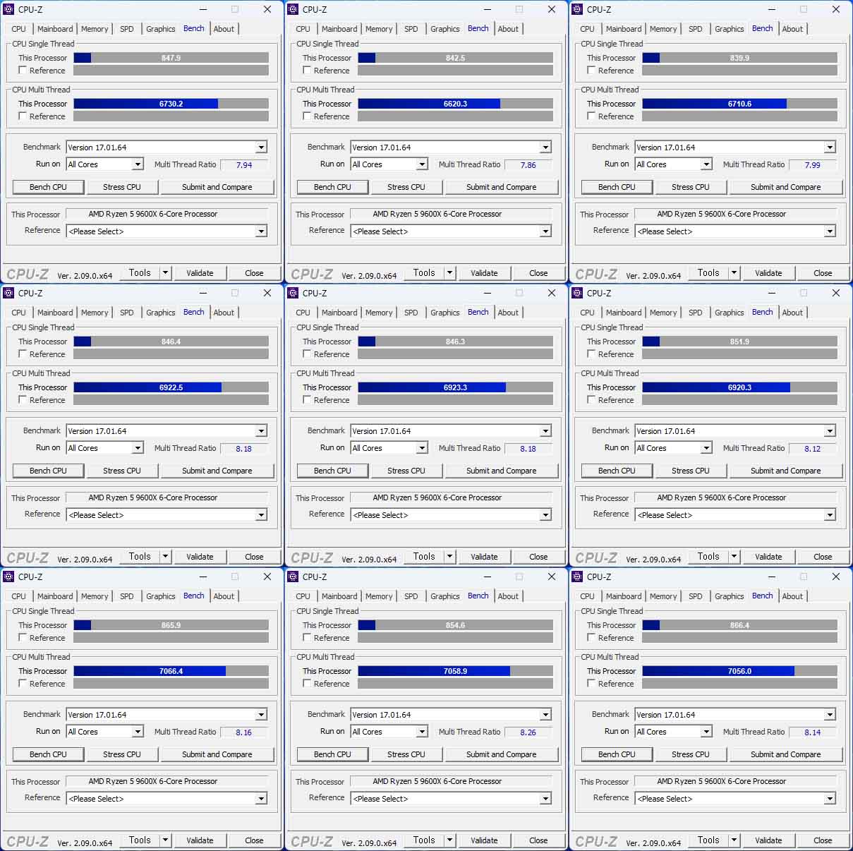 CPUZ 프로그램 벤치 마크를 3회씩 실행할 결과입니다.