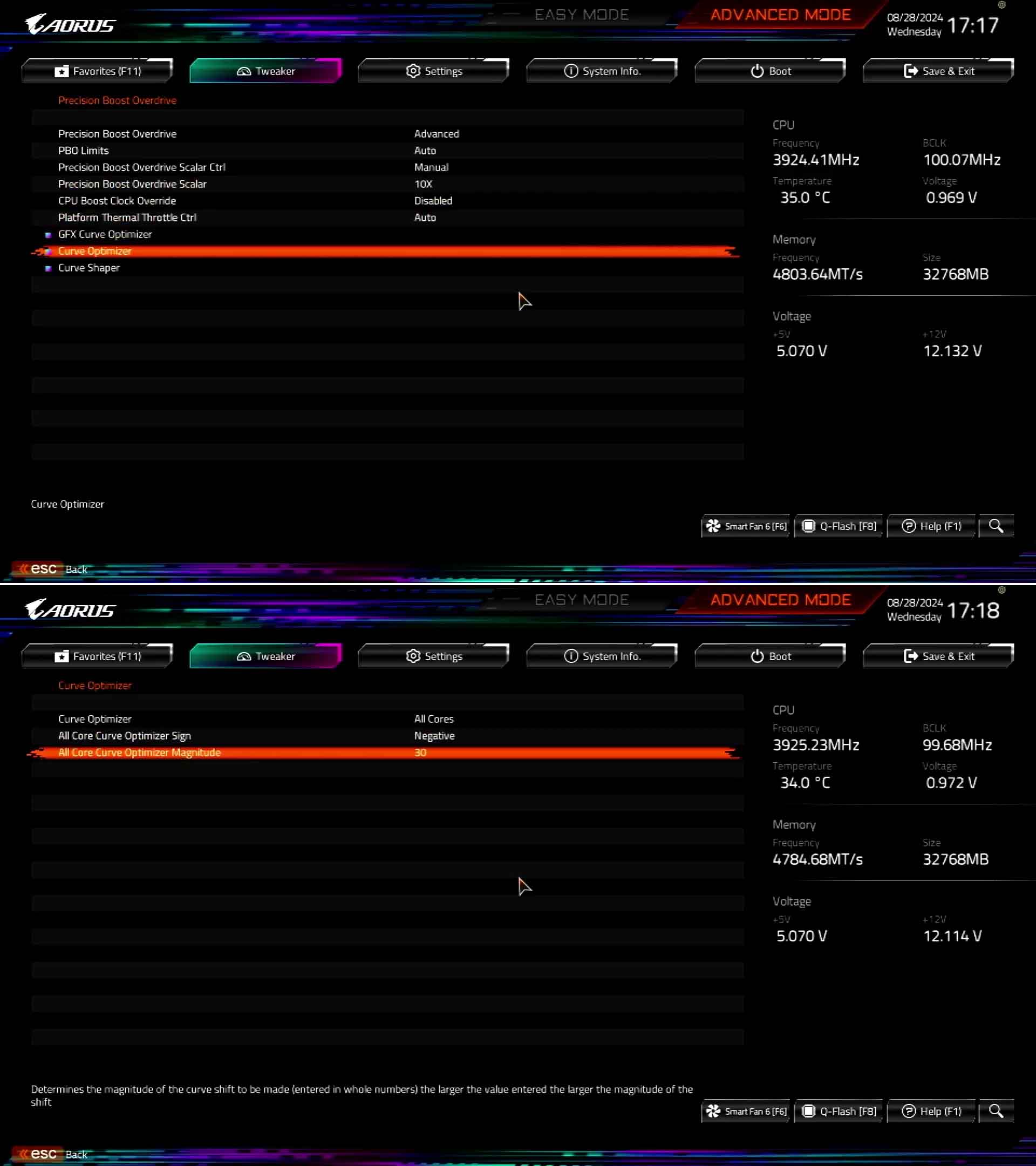 처음은 PBO Enable, 39초에는 PBO Curve Optimizer, 2분 14초부터는 수동오버(55.50배수) 촬영 영상입니다.