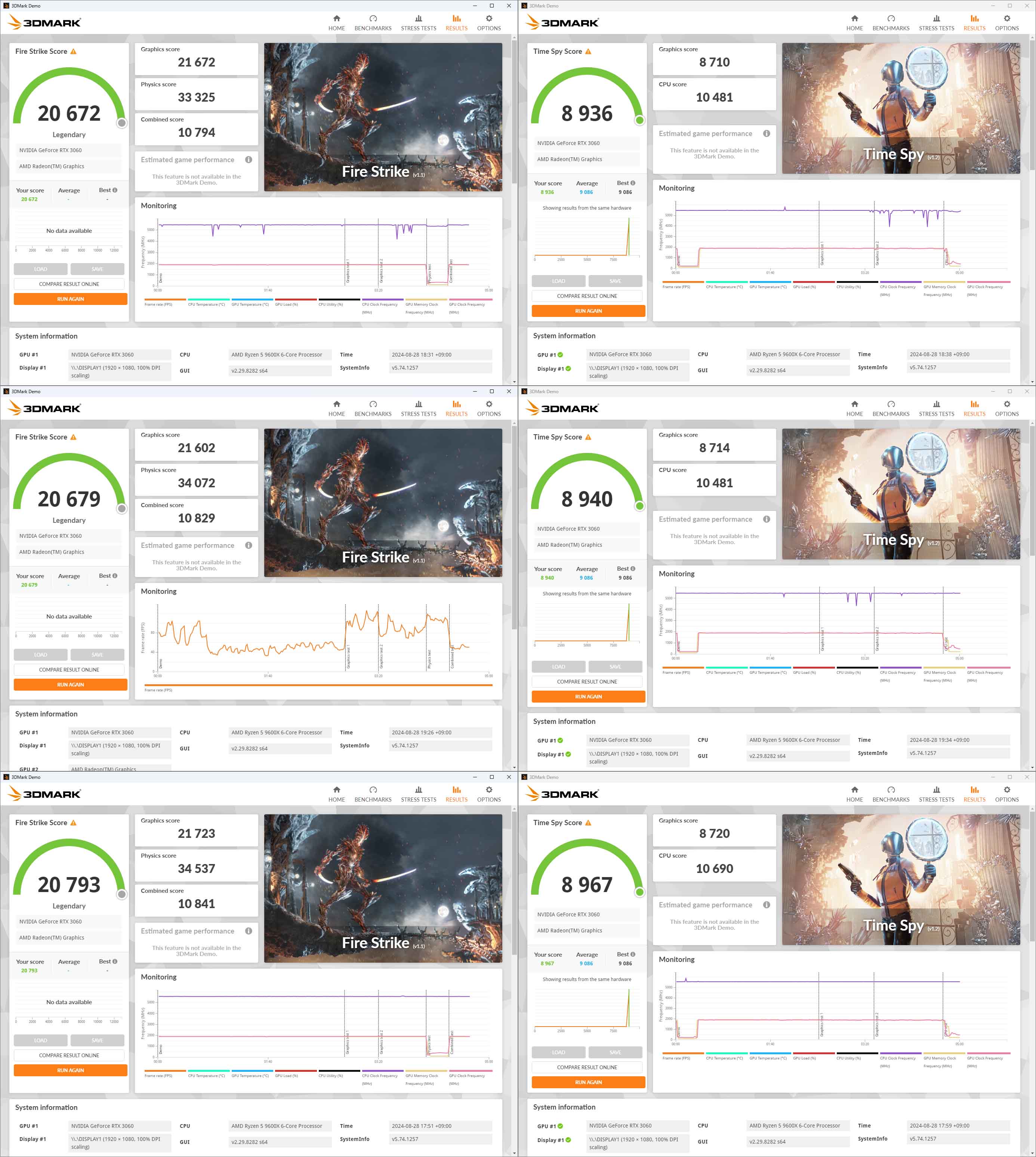 3DMARK 파이어 스트라이크와 타임 스파일 실행결과입니다.