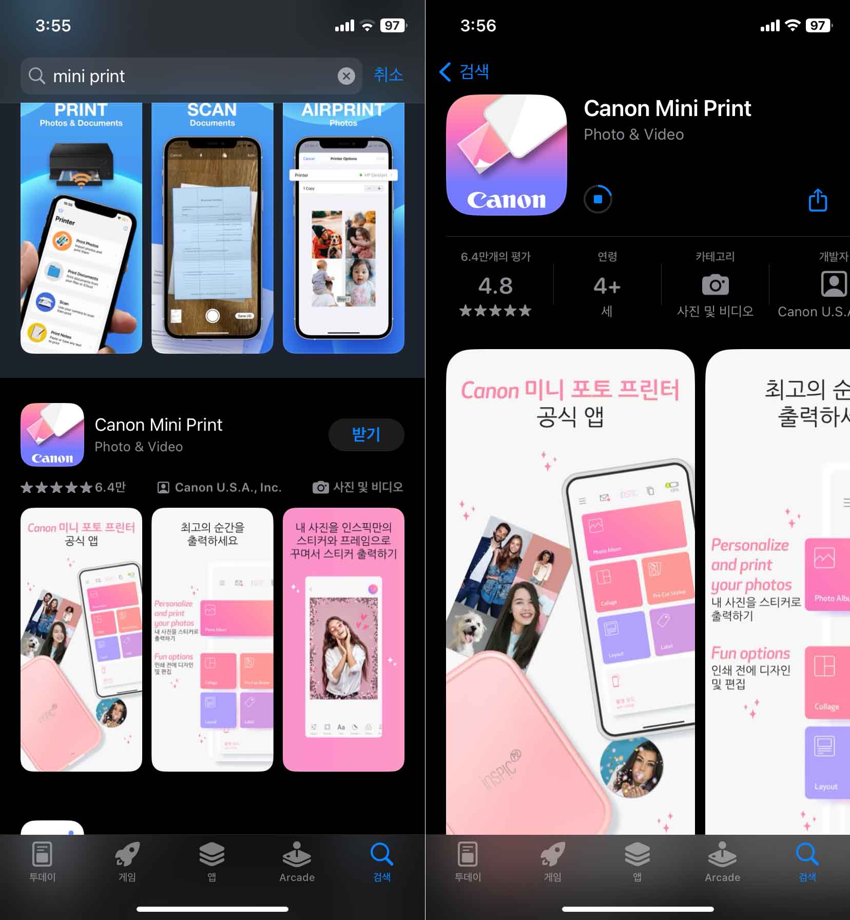 저는 아이폰을 사용하기 때문에, 애플 앱스토어에서 Canon Mini Print를 설치했습니다.